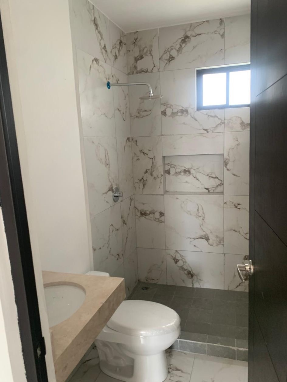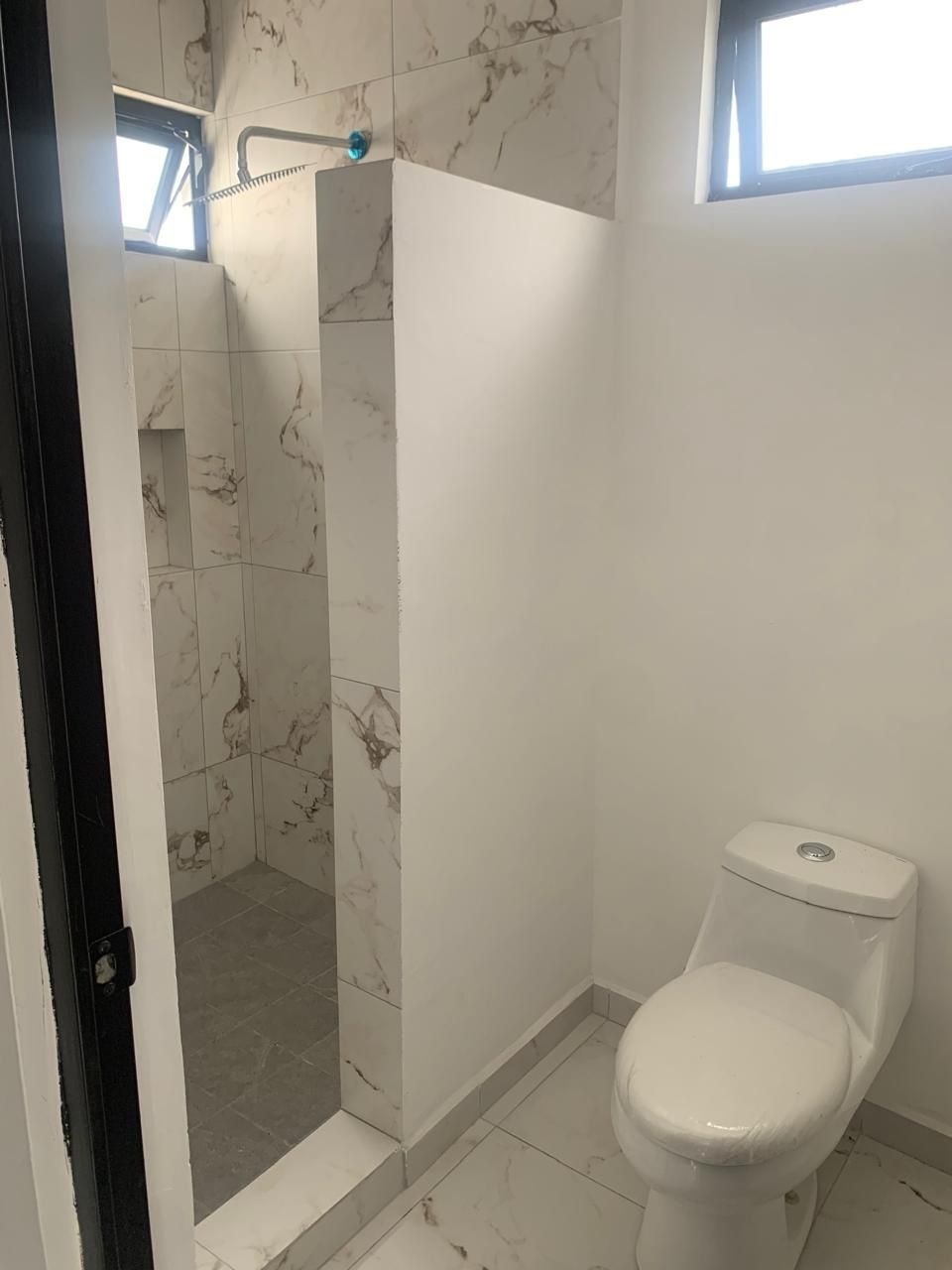 Puerta principal de seguridad y placas de mármol en todos los baños