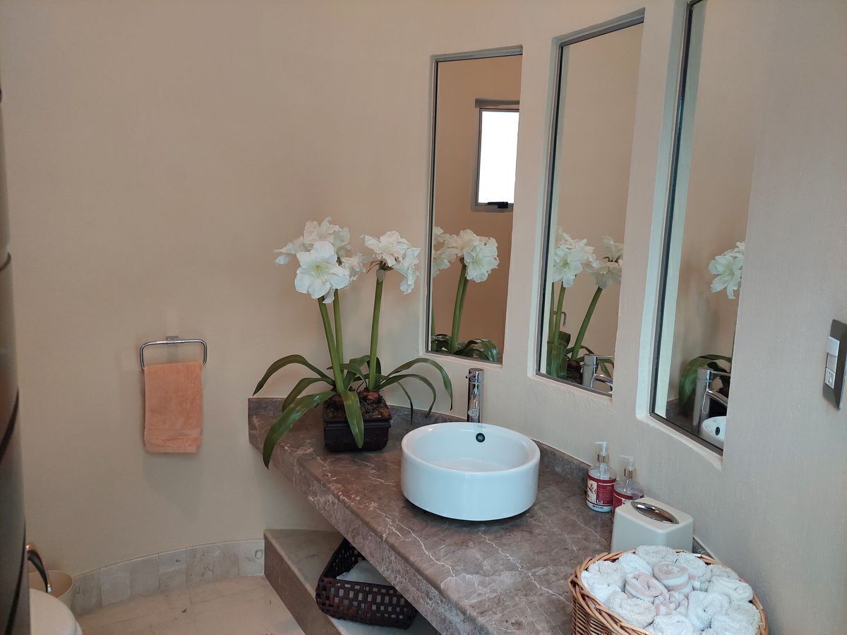 3 recámaras con baño. La recámara principal con tina de hidromasaje y vestidor.