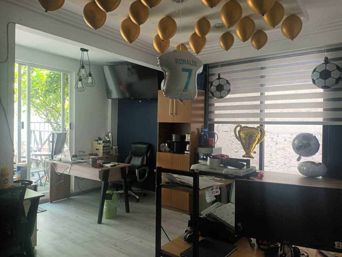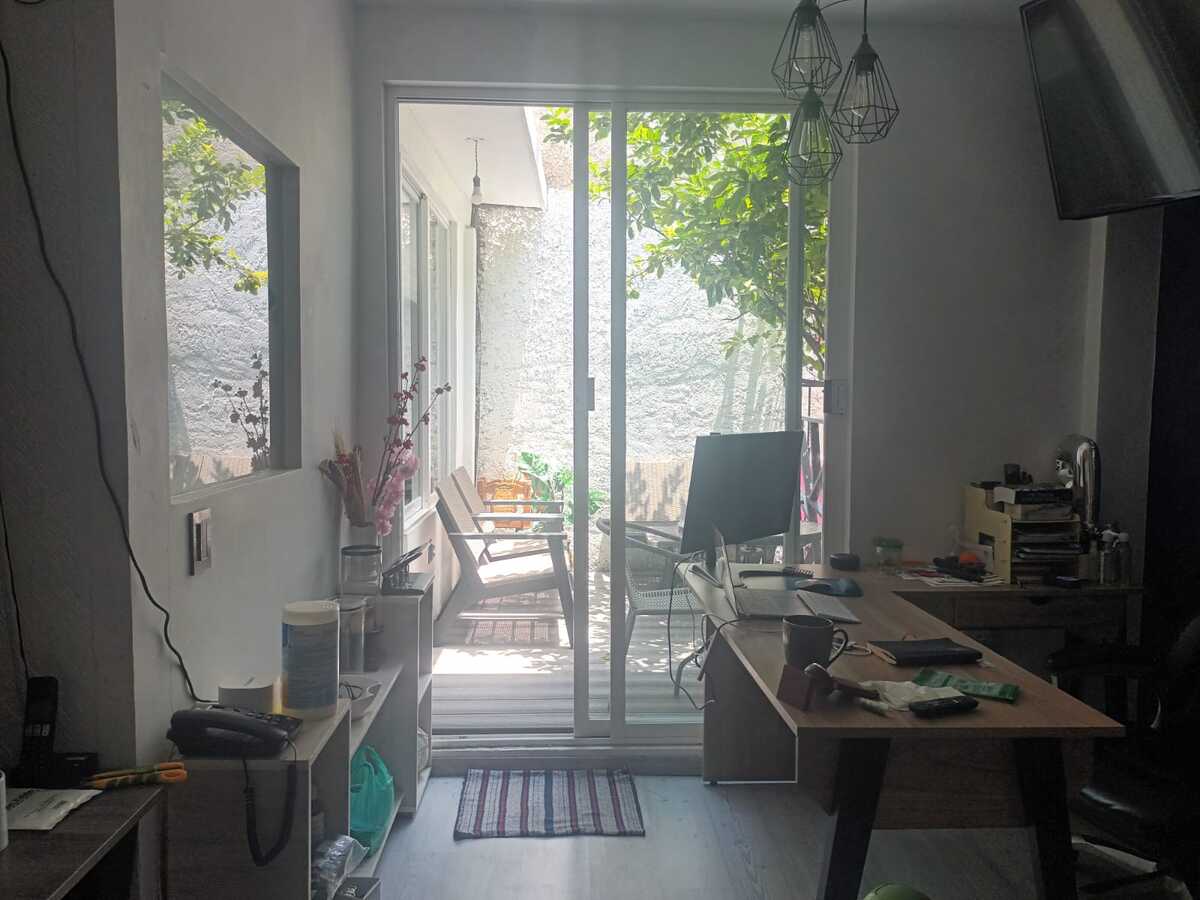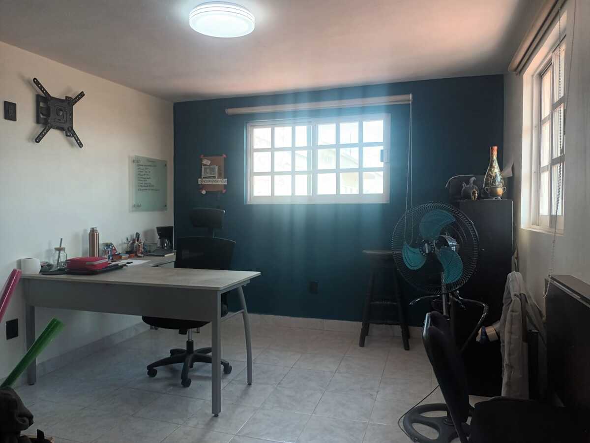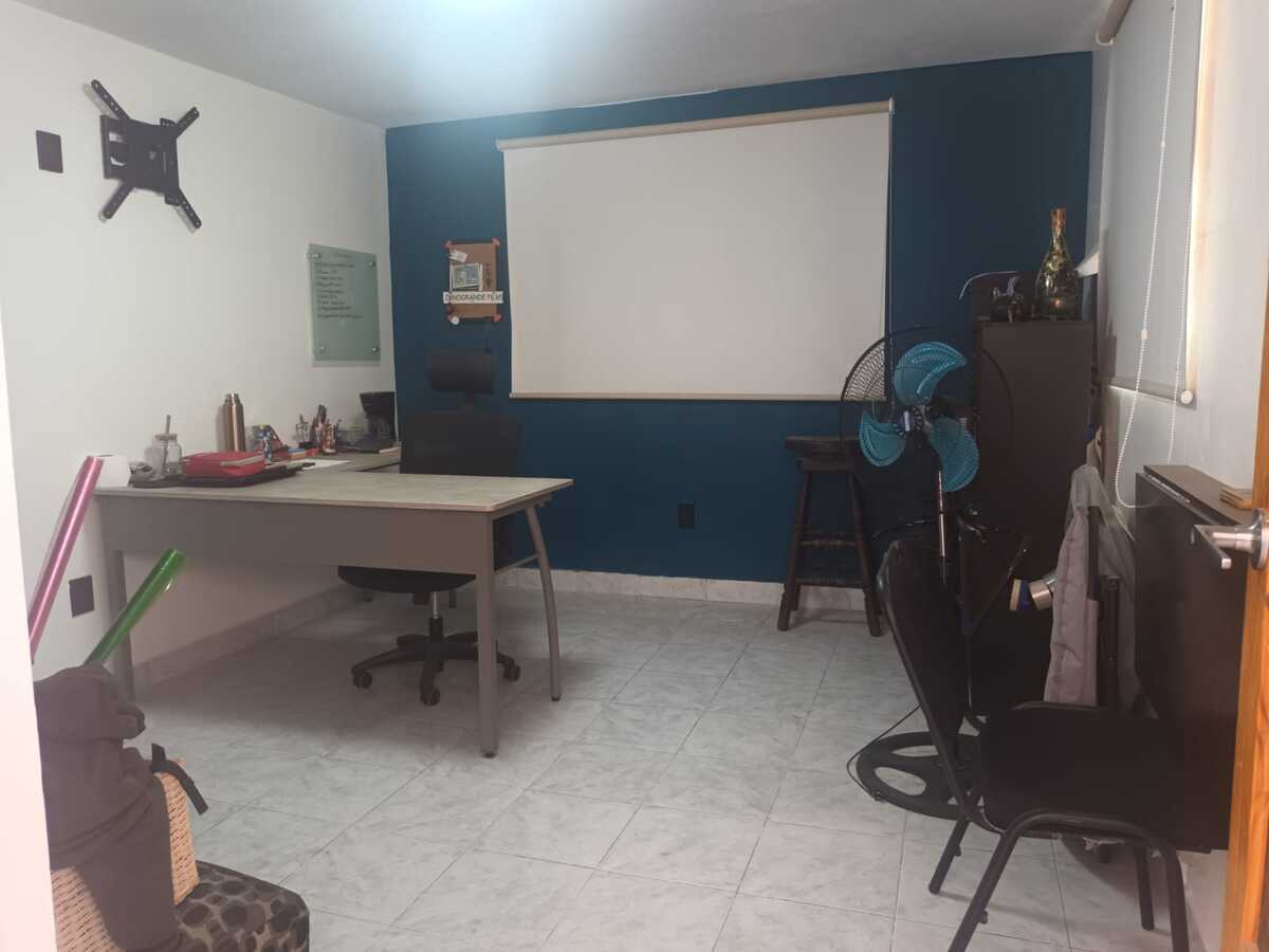 Segundo nivel: Área de oficinas con dos medios baños, originalmente tres recámaras (la principal con baño completo y otro baño adicional). Terraza con acceso desde una de las recámaras.