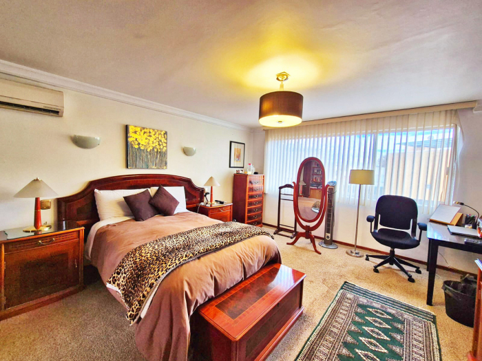 La casa tiene 4 recámaras, una de ellas esta en la planta baja, con vestidor y baño y un espacio de lectura que da al jardin.