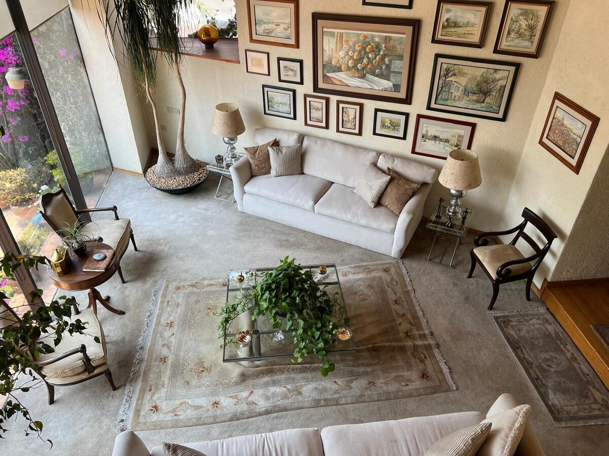 Con 777 M2 de terreno y 450 de construcción, situada en calle privada, con vigilancia las 24 horas. Sala comedor de doble altura y con vista y salida al jardín.