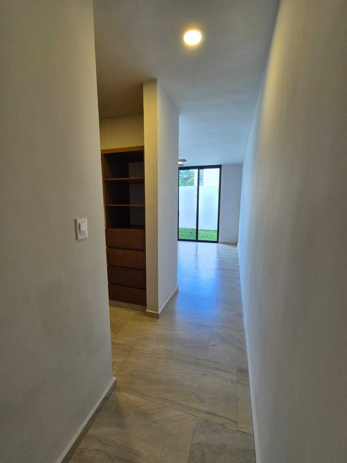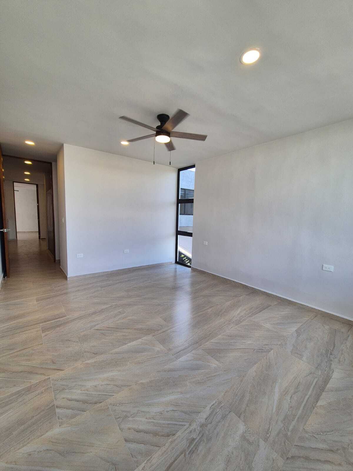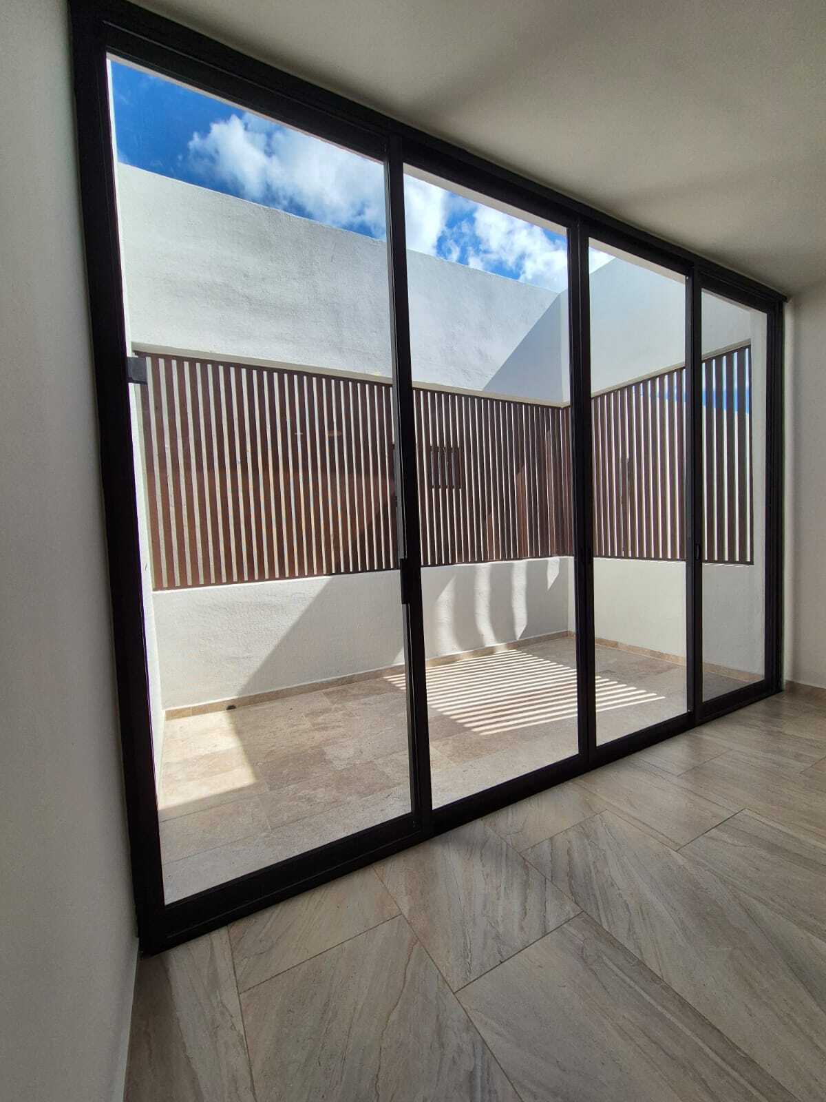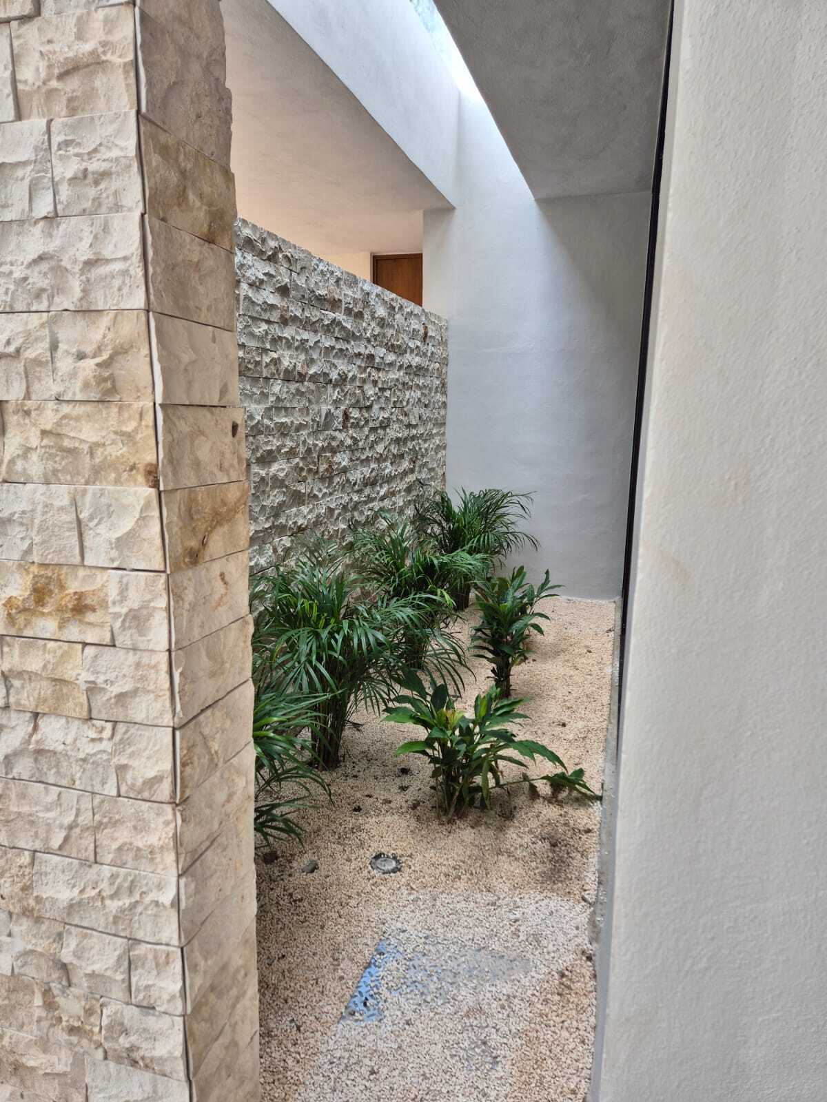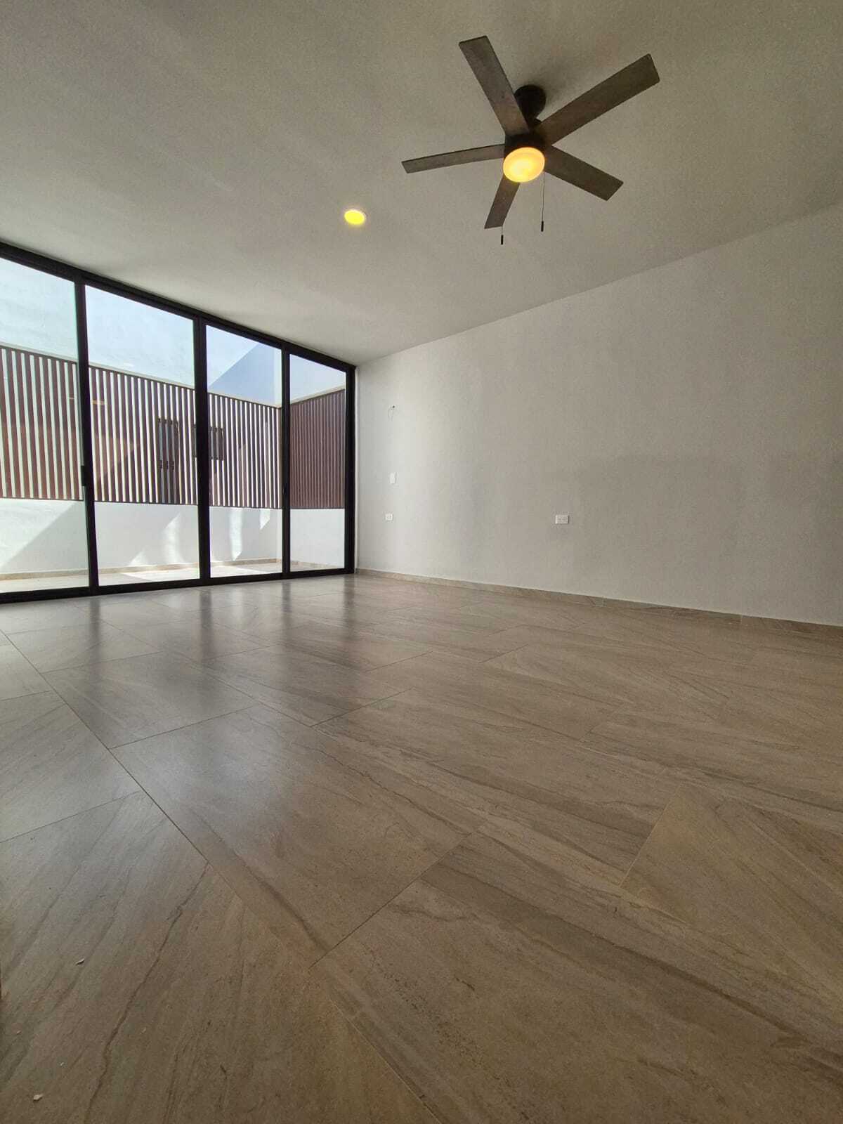 Modern and elegant style residence for pre-sale within the NorteMerida private community, with generous spaces, large land, and luxury finishes. It stands out for its spacious common areas such as a double-height living-dining room, family room, and a pool of 3 × 9 m. Includes service room with bathroom, laundry room, 3000 L cistern, water treatment system, solar panels with micro-inverter, water softener, and hydropneumatic system .
