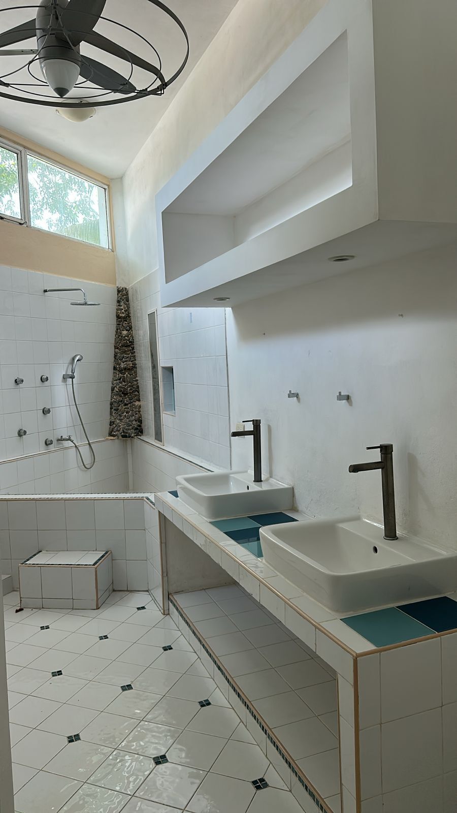 -Recamara principal con amplio closet vestidor, baño completo con doble lavabo y tina.