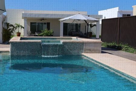(jardin amplio, cochera para cuatro carros, cuarto de servicio etc)