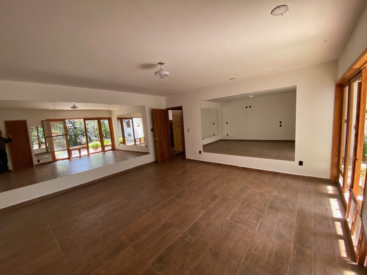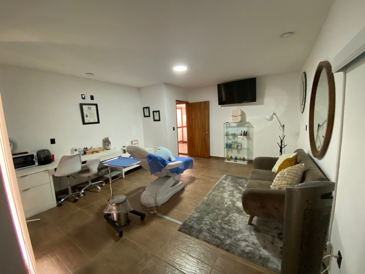 Puerta en planta baja y escalera independiente, recibidor con protecciones de herrería, baño completo, sala comedor, cocina, salón de yoga y diferentes usos de ejercicios, salón de baile, baño, terraza, consultorio grande con baño, closet, cuarto de masajes, en azotea bodega y medio baño.