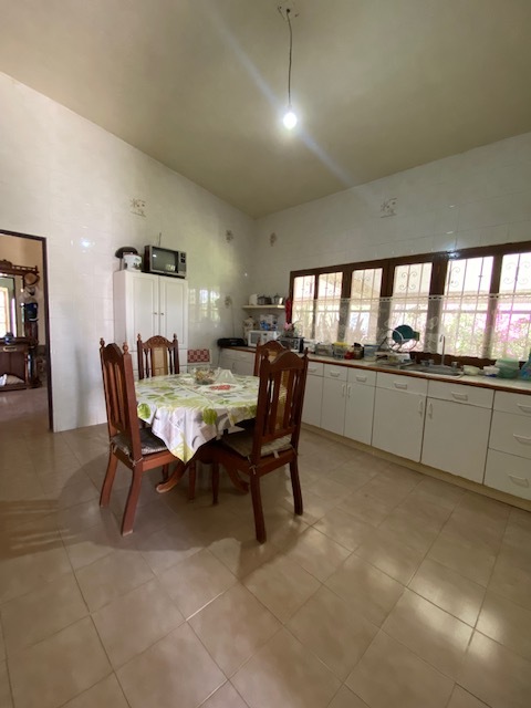 Entrando se encuentra la sala con chimenea, madera y piedra, el comedor y la cocina. También el área de lavado y patio de tendido.