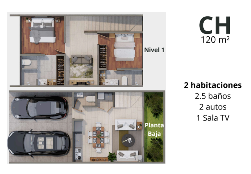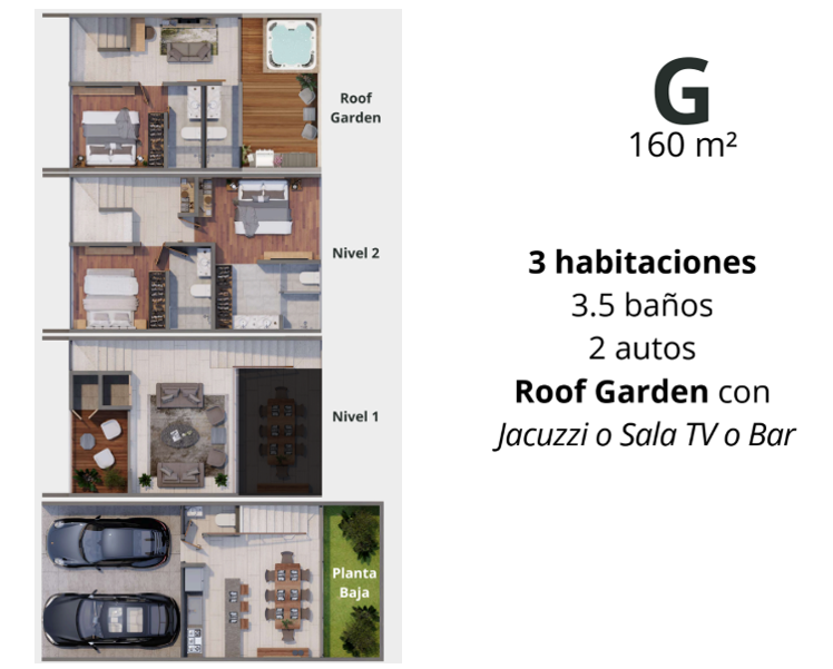 • 2.5 o 3.5 baños