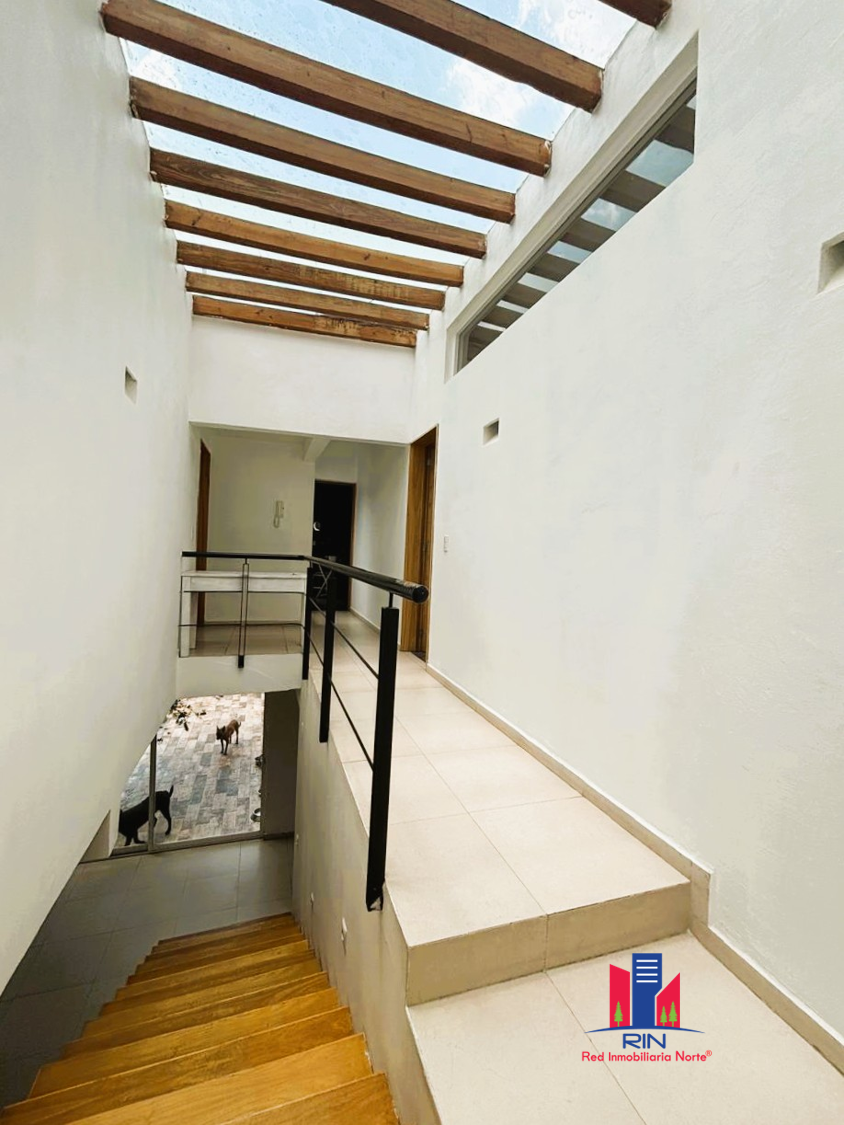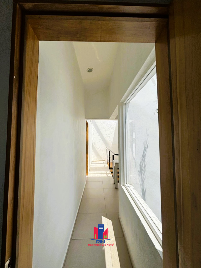 Construida en terreno descendente, cuenta con 3 niveles , toda la casa tiene ventanería de PVC muy resistente con aislamiento térmico y auditivo.