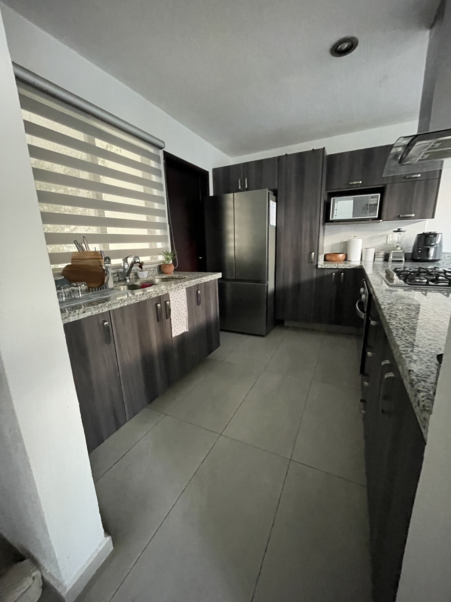 La casa cuenta con acabados de calidad y detalles de diseño que se plasman en su cocina con amplia barra de granito, que se conecta con el área de sala comedor,