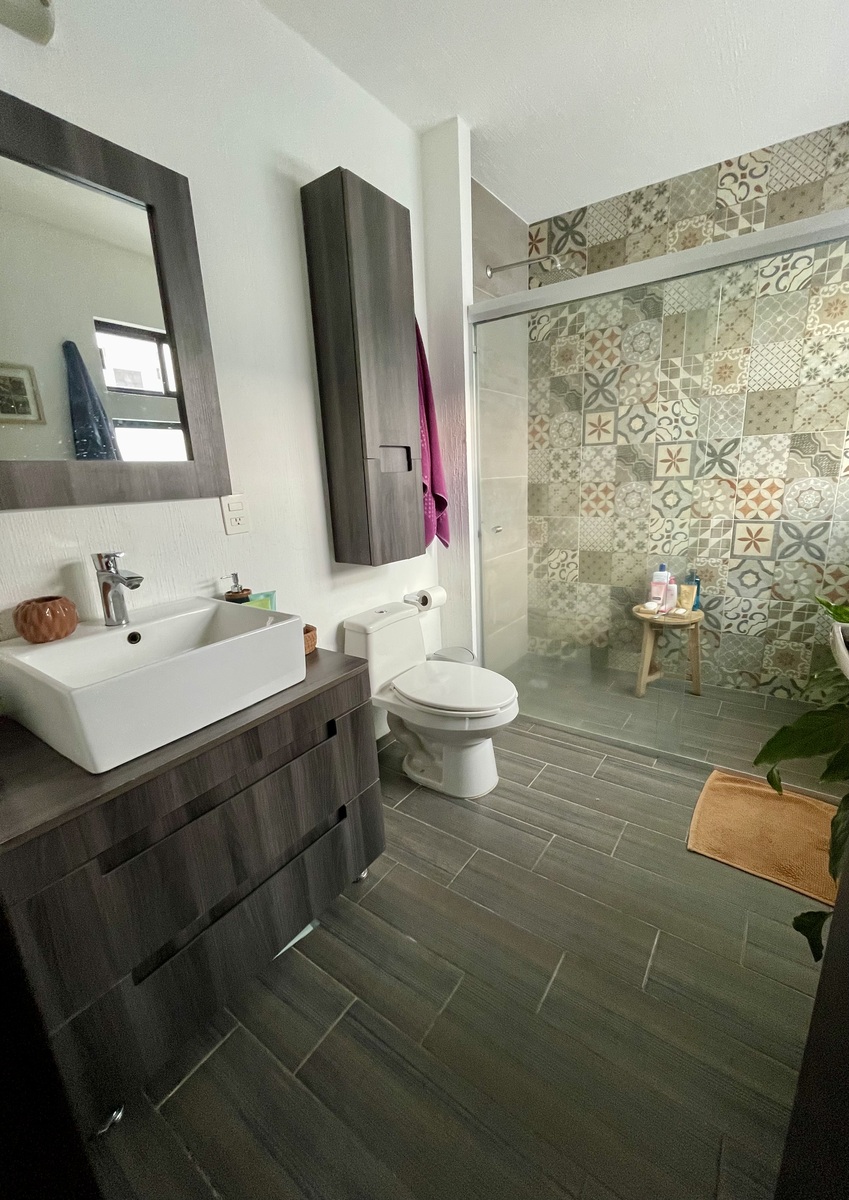 En planta alta se encuentran, la recámara principal muy amplia con baño completo y clóset de pared a pared, dos recámaras secundarias de buen tamaño que comparten un baño muy amplio.