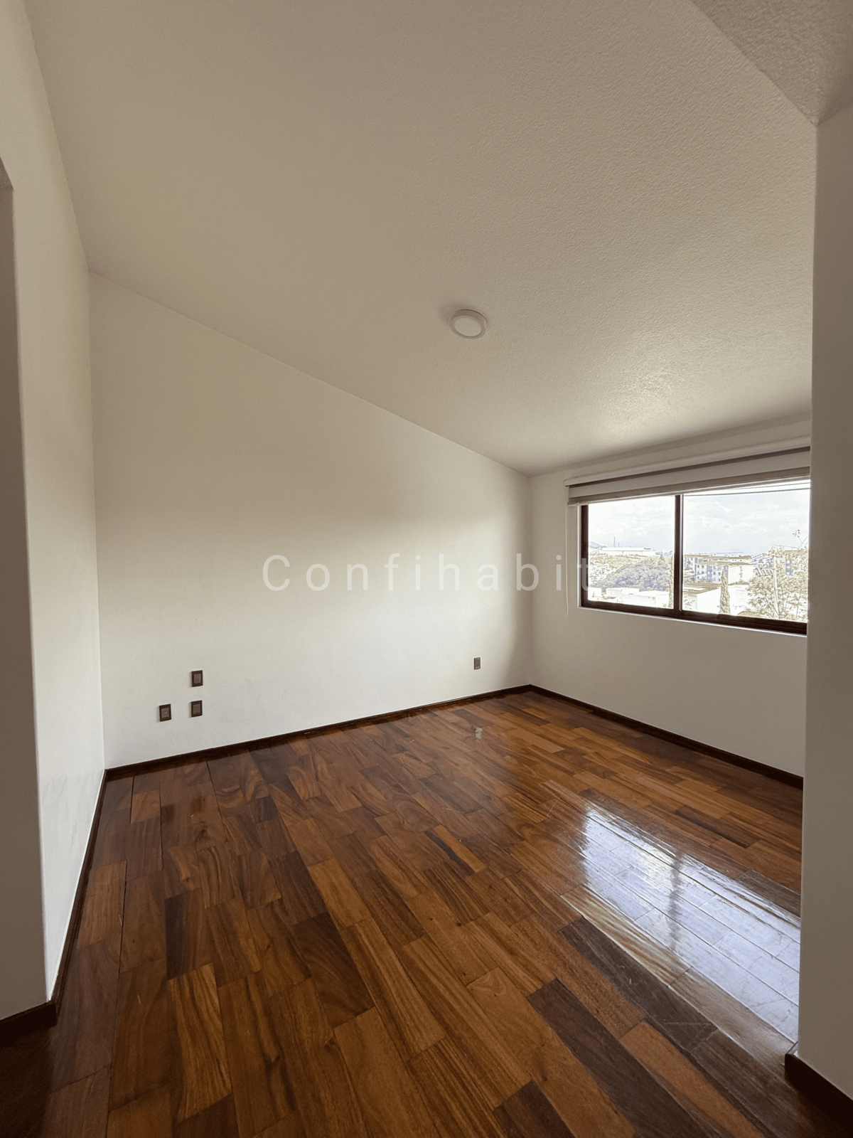 Tres recámaras con vestidor y baño completo, estudio, vestidor o cuarta recámara, clóset de blancos, sala de TV.