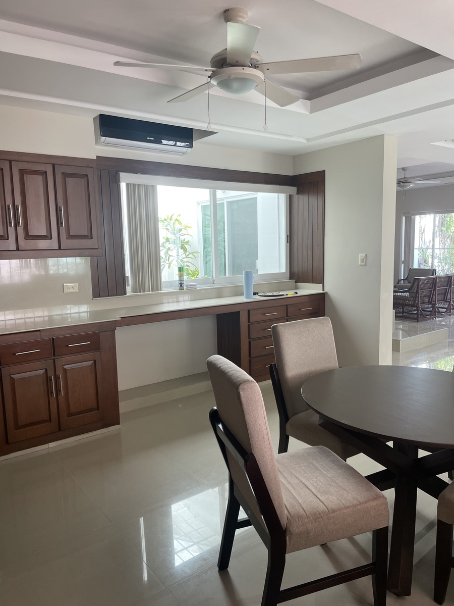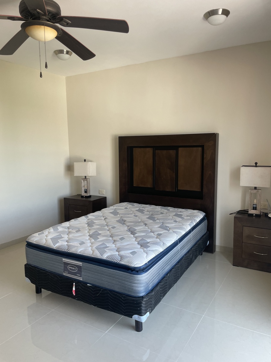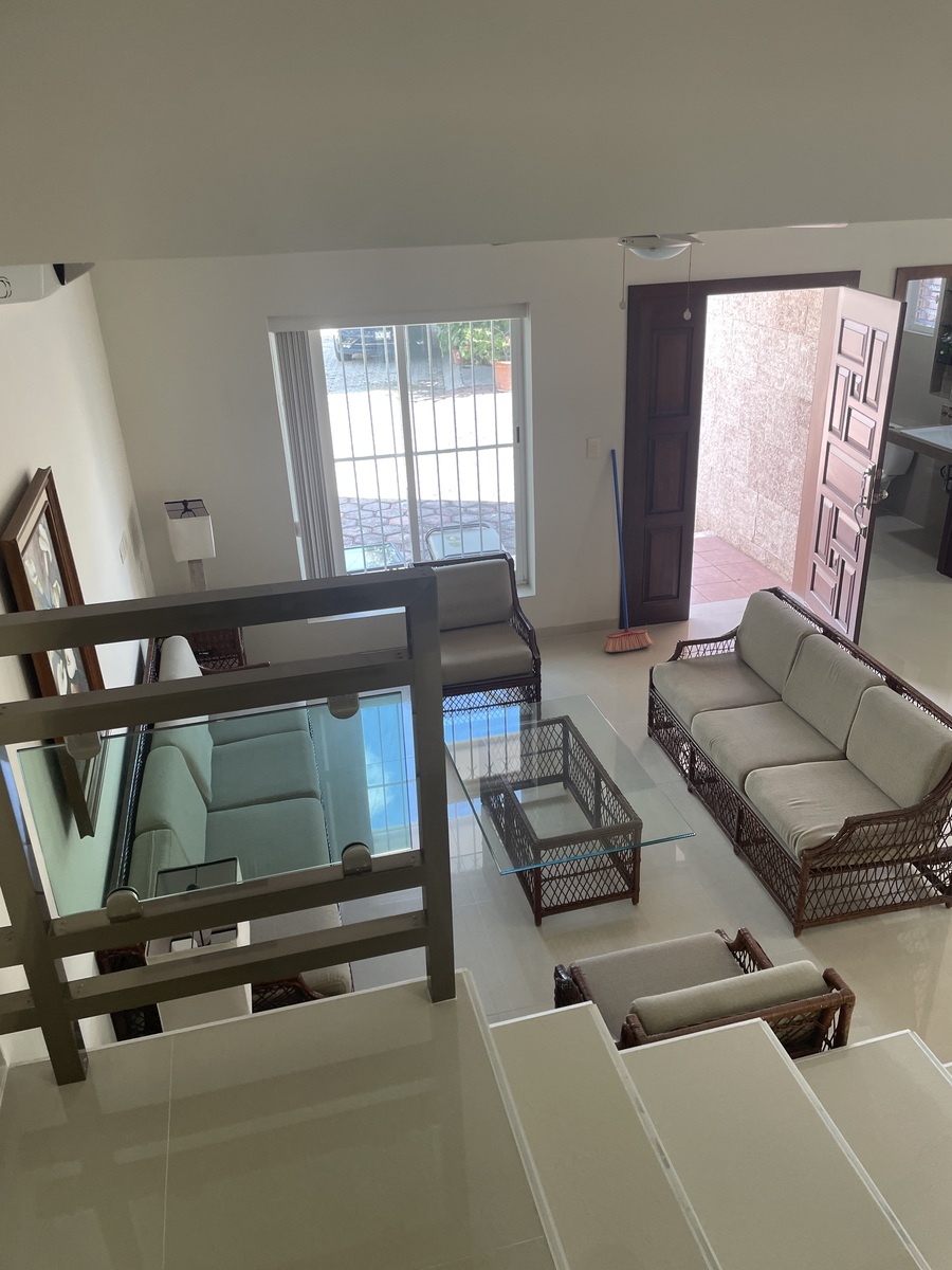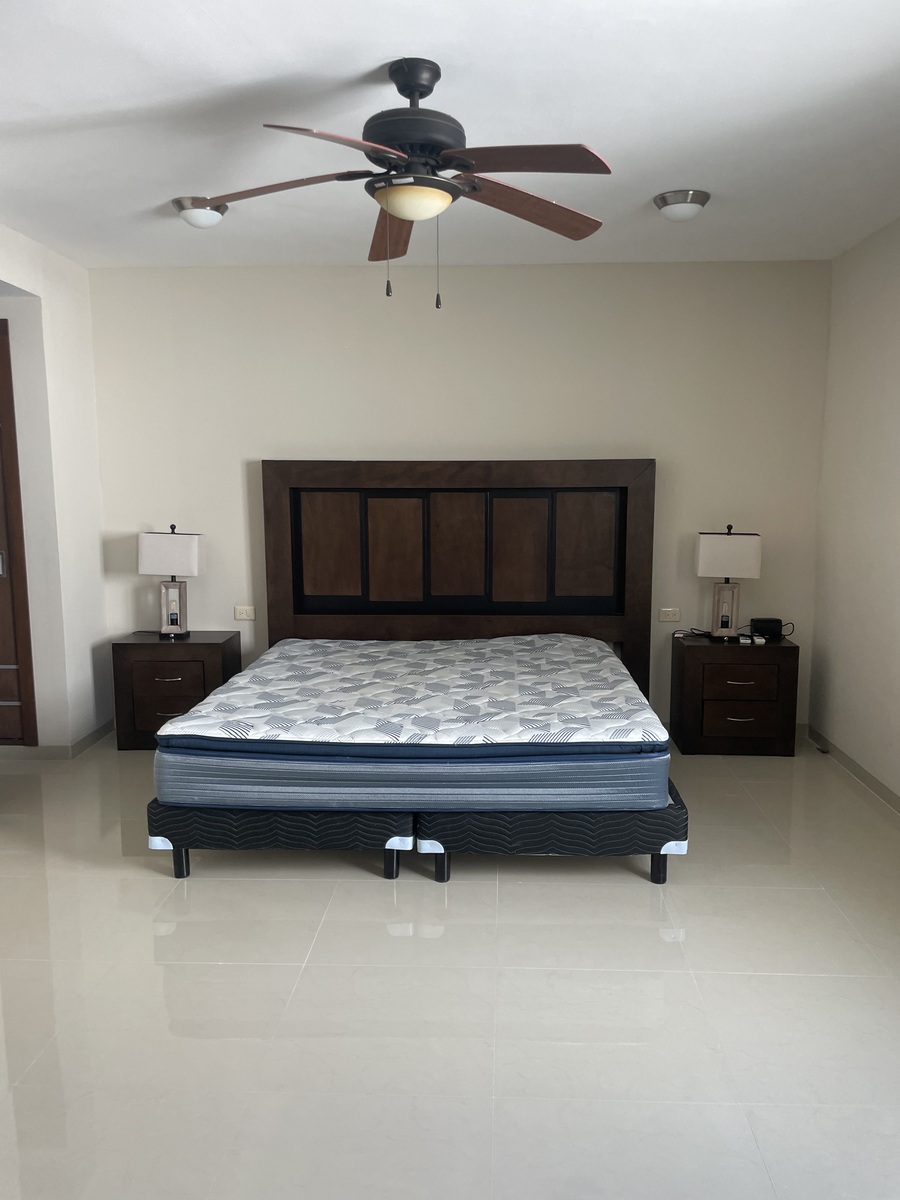 La casa está totalmente equipada, muebles de sala, comedor, desayunador, refri, micro, lavadora, secadora, recámaras amuebladas con camas king y matrimonial, televisión.