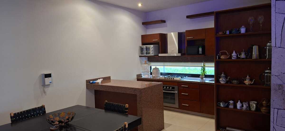 - Cocina integral de cedro con granito, horno de gas, eléctrico y microondas empotrados