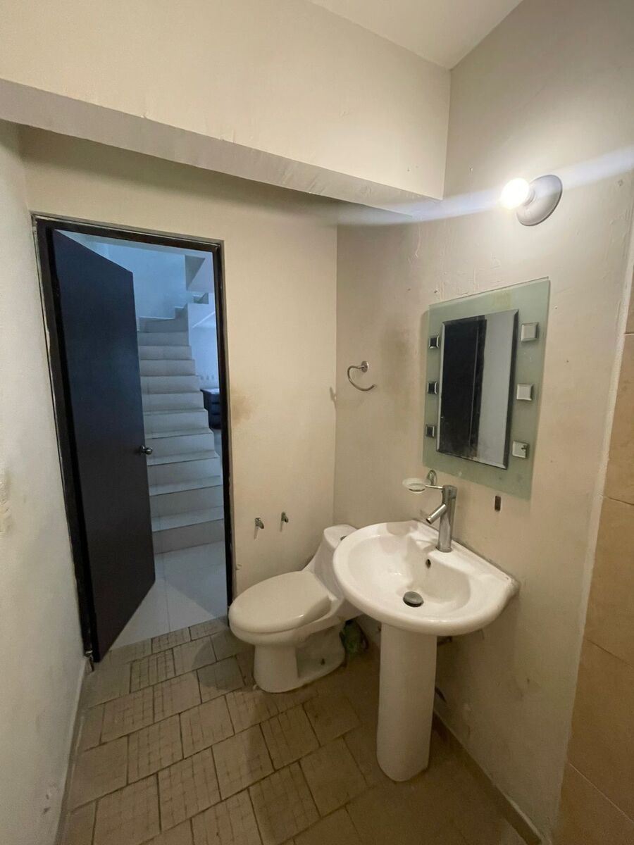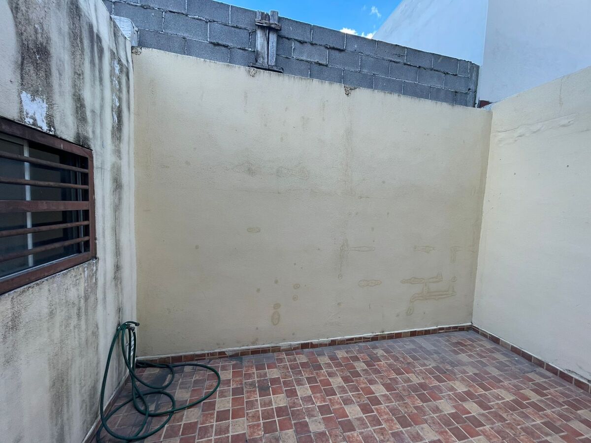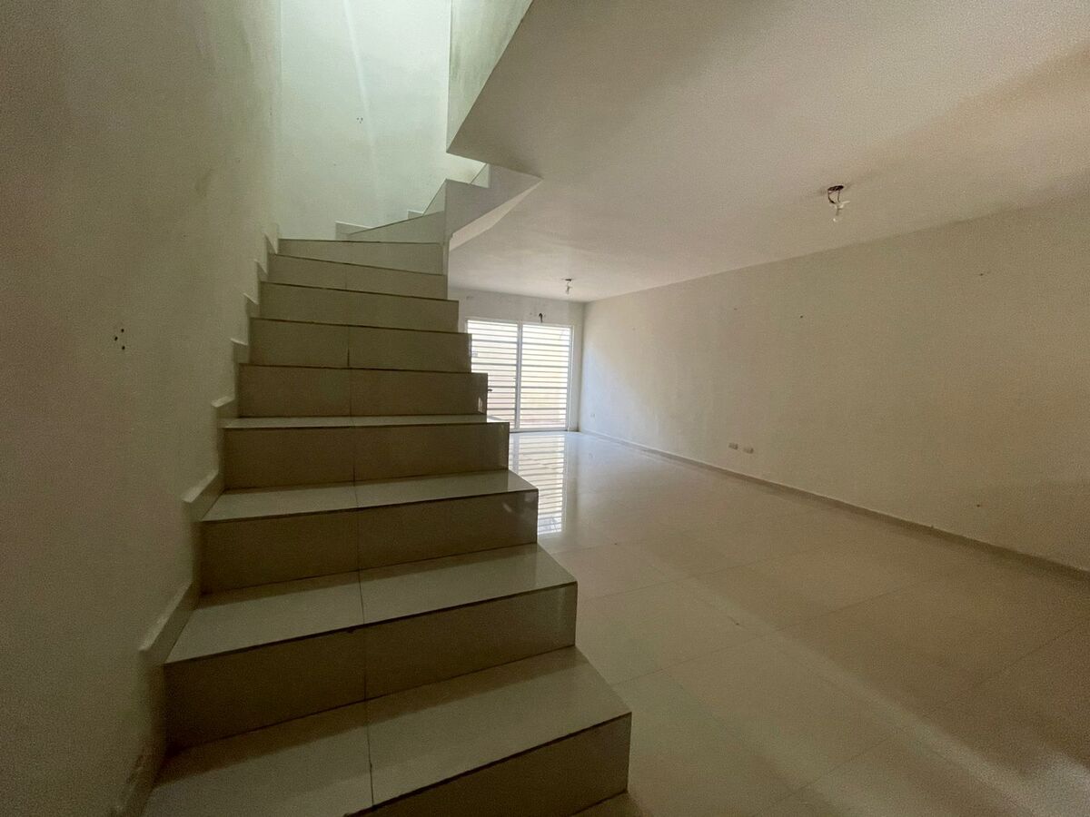 Cochera para 1 auto, sala, comedor, cocina con cocineta, estufa, campana y barra, baño completo, lavandería cerrada, pasillo y patio.