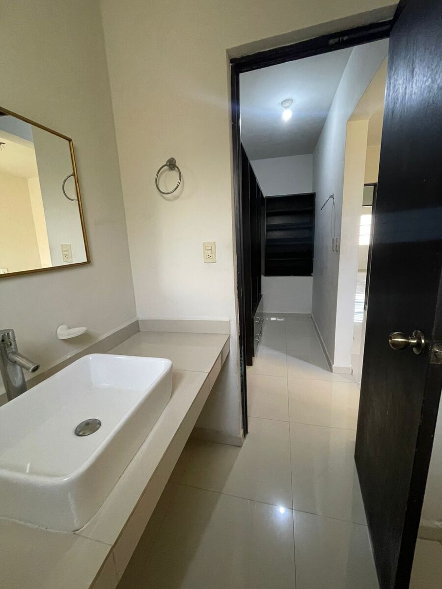 Recámara principal con closet, baño completo y balcón, dos recámaras secundarias, estancia y un baño completo.