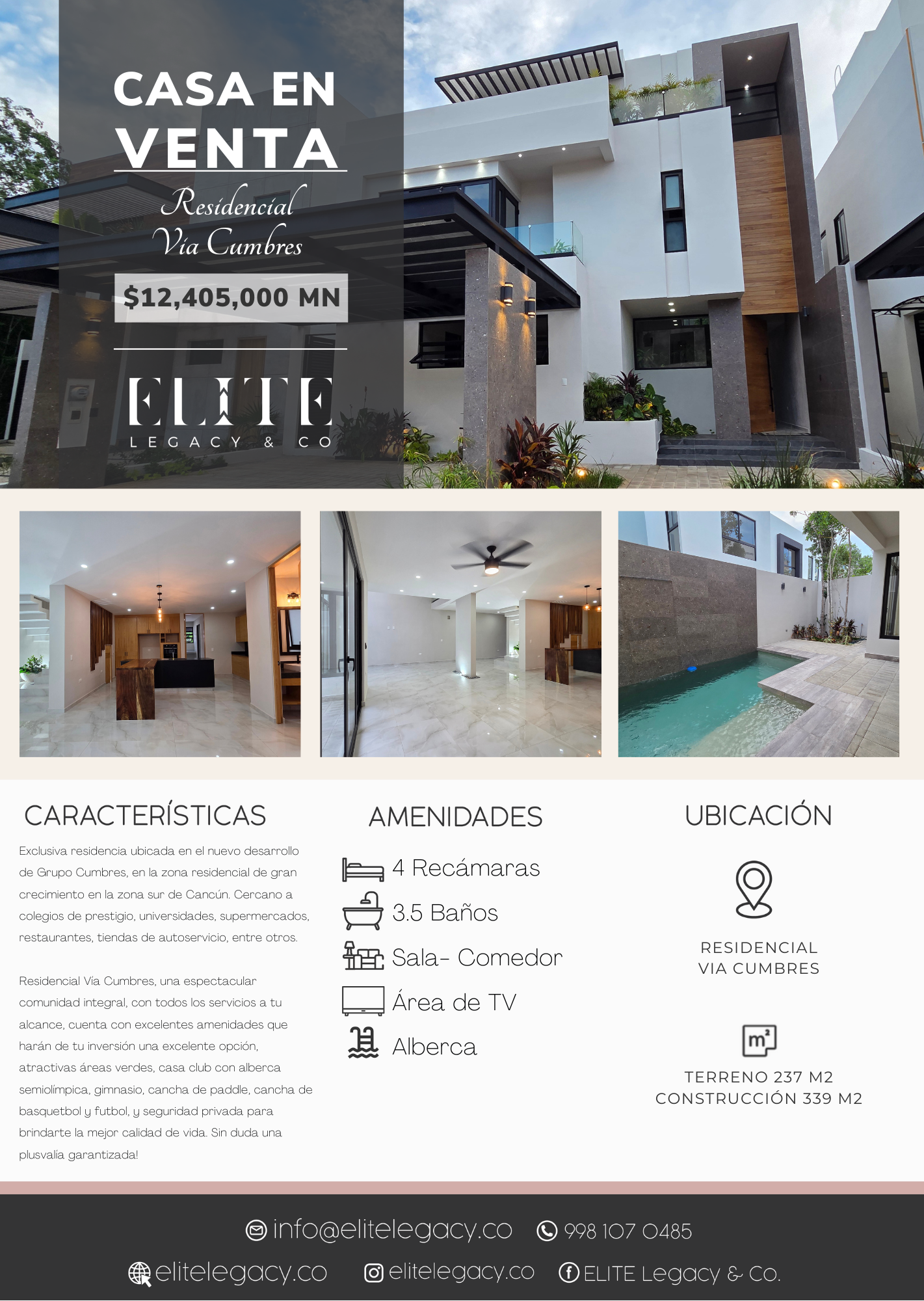 Residencial Vía Cumbres es una de las zonas residenciales mas exclusivas y modernas en Cancún, Ubicada en una de las áreas de mayor crecimiento y plusvalía, este desarrollo ofrece un estilo de vida de lujo, seguridad y confort.