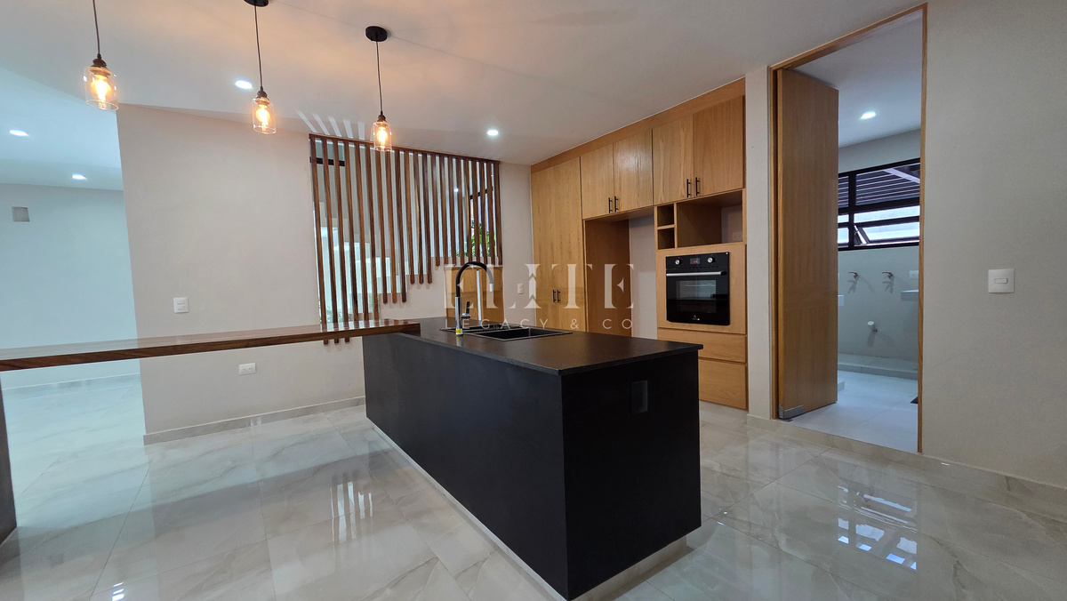 Cocina integral equipada con campana, parrilla de gas, parrilla de inducción, horno eléctrico