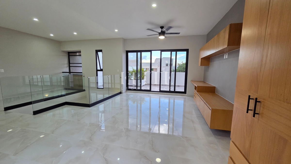 La casa cuenta con cisterna, boiler de paso, hidroneumático de gran capacidad, filtros y equipo de alberca, canceles de vidrio templado, aluminio y ventanas de calidad “serie 80”, iluminación LED, preparación para aires acondicionados, ventiladores, macetas y jardineras interiores con iluminación, canalizaciones para TV de cable y ethernet, lámparas colgantes en sala triple altura, pisos de porcelanato, espejos en baños, etc. además de un sistema constructivo novidesa a base de nervaturas y casetones de poliuretano que permite un aislamiento mejor de las altas temperaturas