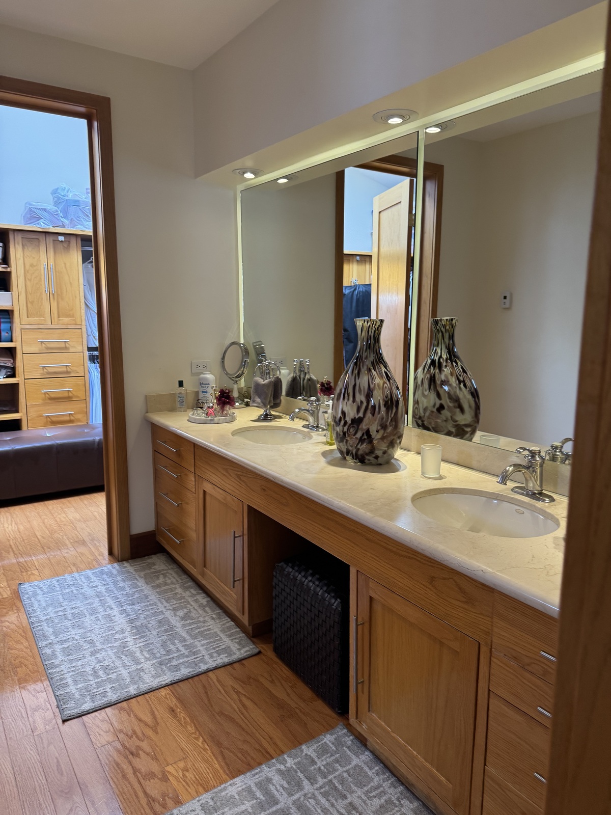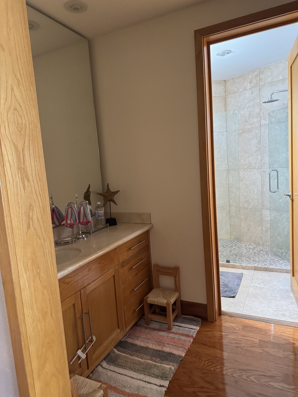 Main bedroom with a very spacious closet, jacuzzi, and shower