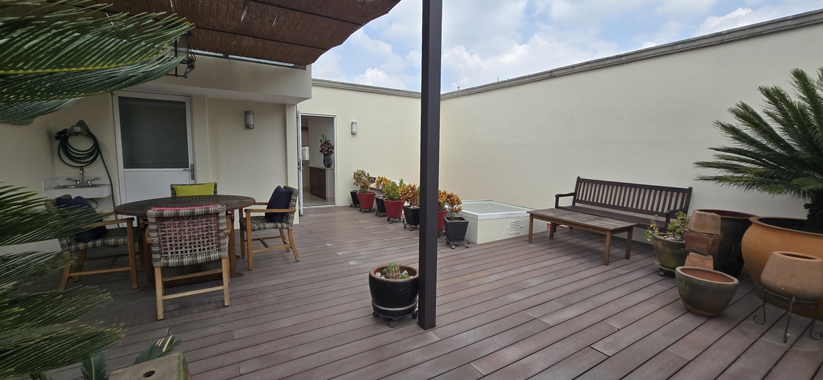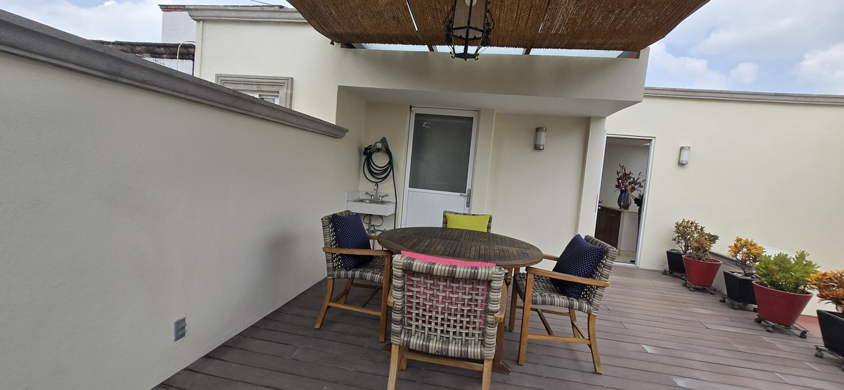 Roof garden con medio baño, sala de T.V., área de lavado y cuarto de servicio.