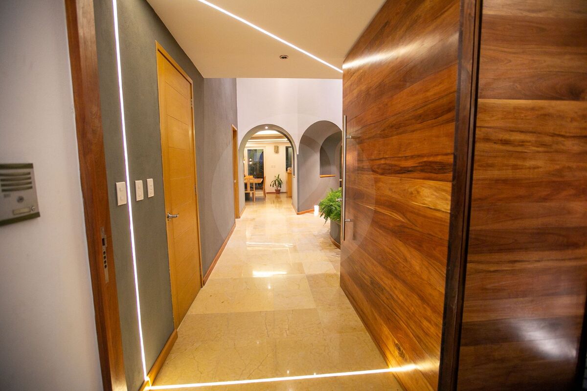 Discover the House of the Moon, located in the exclusive La Trinidad subdivision between Puebla and Cholula. This property combines Mexican architecture with a modern and timeless design. With a panoramic view of the Popocatépetl, Iztaccíhuatl, La Malintzi, and Pico de Orizaba volcanoes, as well as the city skyline, this house offers a unique atmosphere. Its double-height foyer and 10 m² glass dome provide natural light and a magical ambiance. Stone, marble, and fountains add elegance to the spaces. Designed to take advantage of Puebla's temperate climate, the House of the Moon does not require air conditioning. With spacious gardens, terraces, and a roof garden with stunning views, this home is ideal for enjoying life with style and harmony. Live in a safe, connected environment surrounded by peace at the House of the Moon, where living is an art.[CLN-263]
