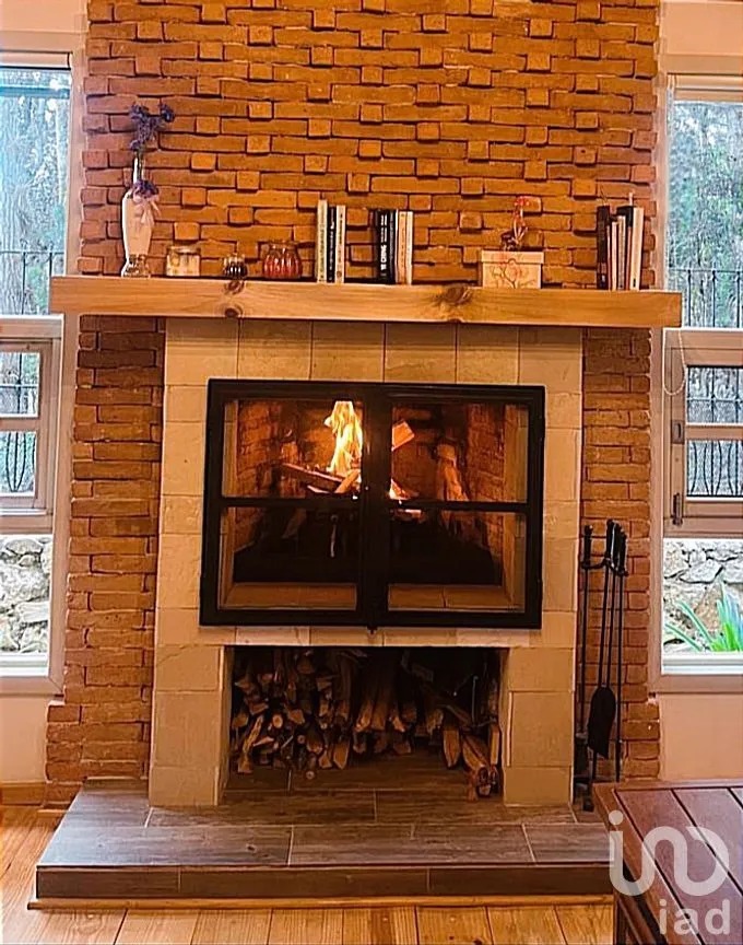 Chalet estilo Canadiense en venta, caracterizado por su construcción en madera de doble pared y aislamiento, piso sobreelevado del suelo y chimenea de piedra que brindan un confort térmico y una temperatura agradable en el interior en cualquier estación del año.