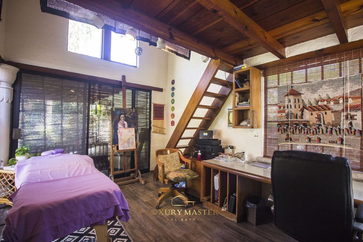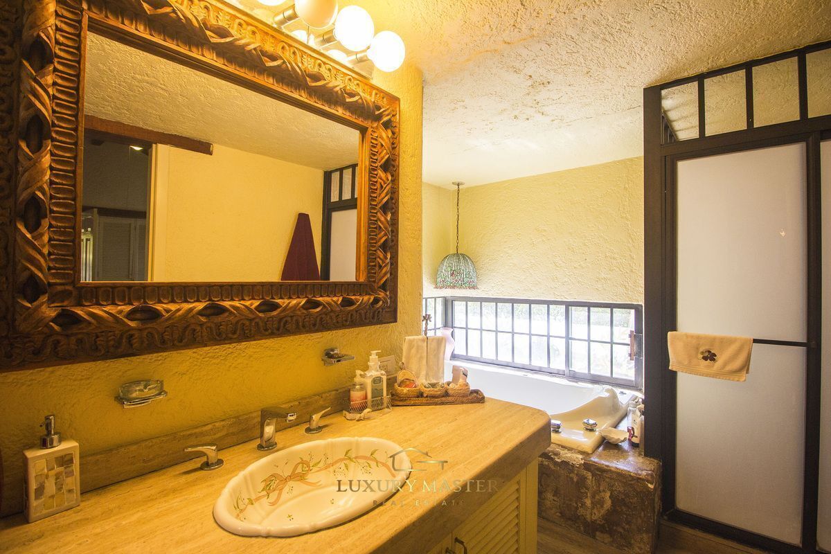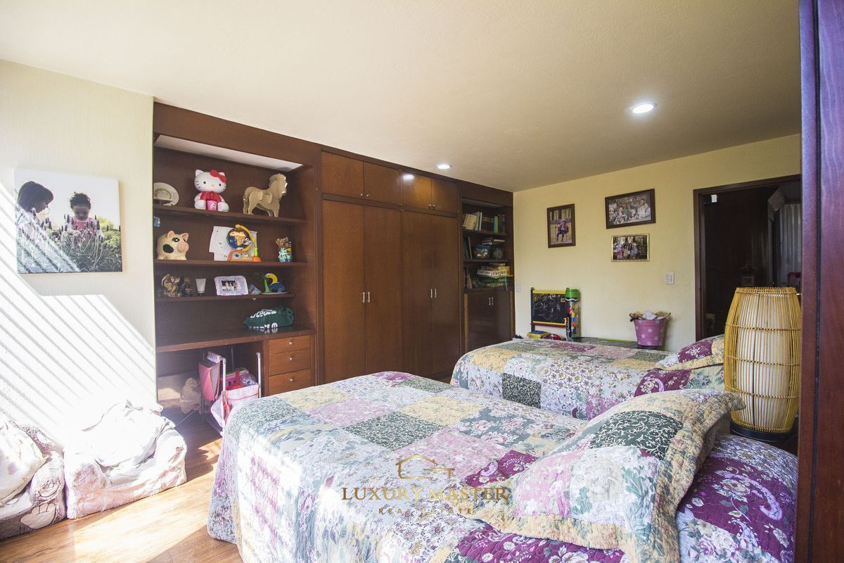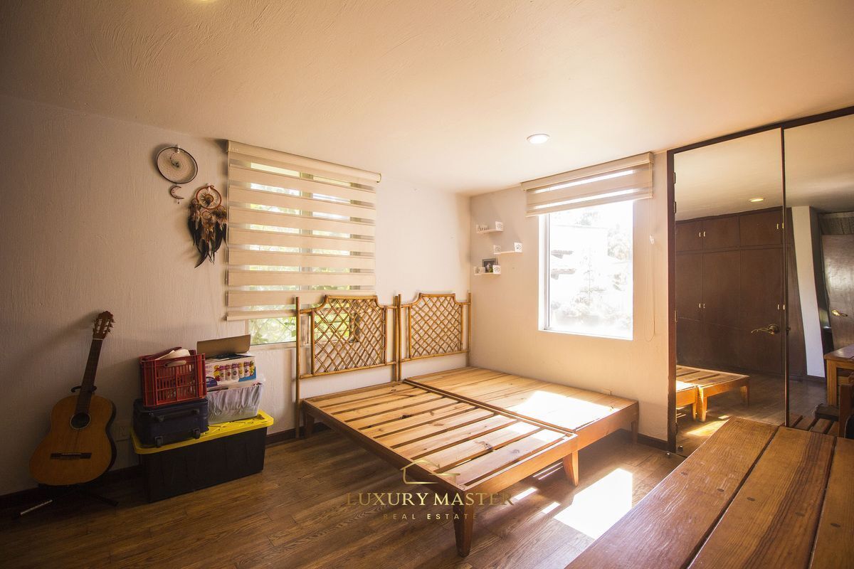 Beautiful residence located in front of the golf course, featuring a beautiful front garden, a lovely terrace, parking for 4 vehicles, upon entering the large house you will find a spacious foyer, a star room, and a living area with magnificent views of the golf course, a half bath for guests, and a small storage room. It also has a quite generous space for the dining room that opens to a beautiful backyard garden, a very spacious kitchen with a breakfast area, and a laundry room. There are two bedrooms on the ground floor, each with a full bathroom and closet; going up to the first floor you will find a very spacious library study, with a lovely view of the golf course, and another master bedroom with its bathroom and dressing room. In the small house or guest house that you will find connected by the backyard garden, there is a service room with its full bathroom, upon entering you have a living room with a fireplace, a kitchenette with its bar and breakfast area; two rooms, one of which has double height and a loft, and an open patio; the other with its closet and full bathroom with tub; in addition to another full bathroom.