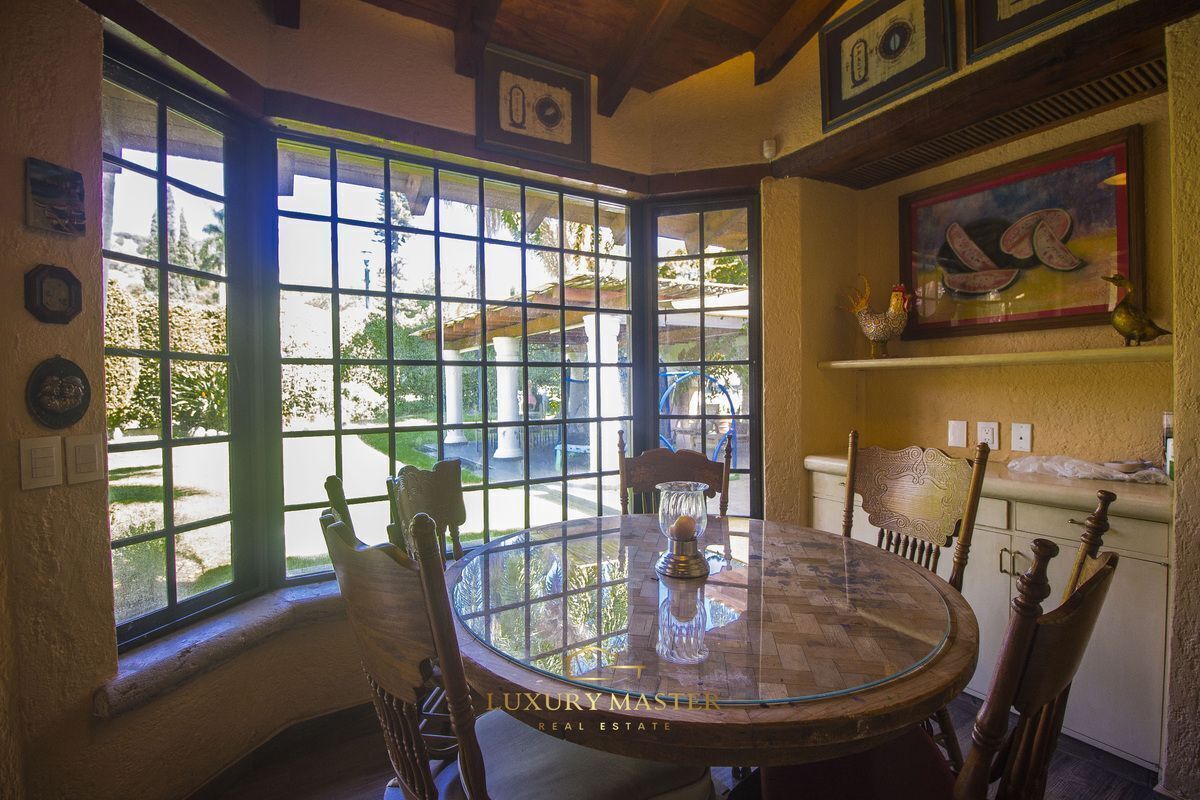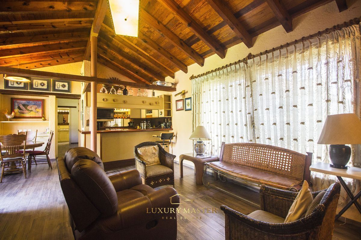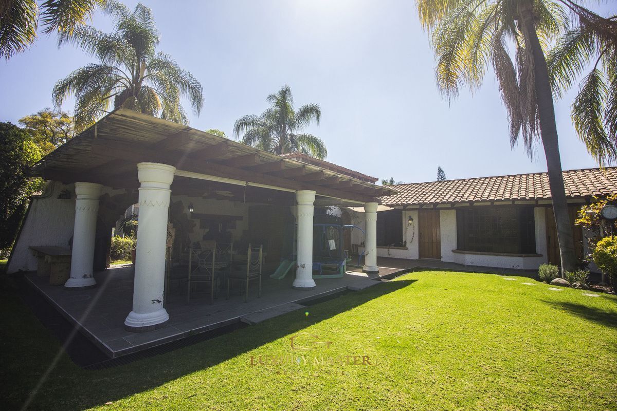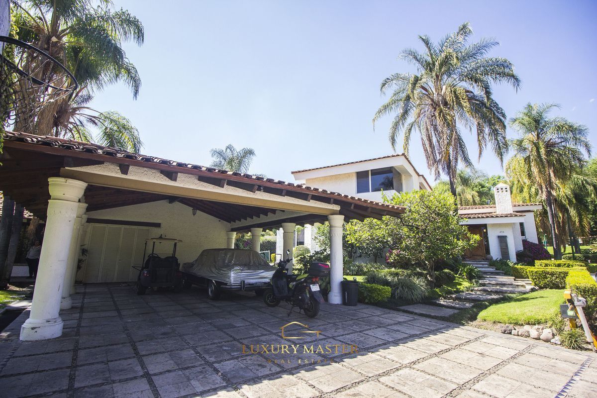 Hermosa Residencia ubicada frente al Campo de golf, cuenta con hermoso jardín frontal, una linda terraza, cochera para 4 vehículos, al ingreso a la casa grande encontrarás un amplio recibidor, una sala de star y un espacio de sala con magníficas vistas al campo de golf, un medio baño para visitas, y una pequeña bodega, cuenta también con un espacio bastante generoso para el comedor que da a un bello jardín posterior, la cocina diseño muy amplio con antecomedor, y un cuarto de lavado, cuenta con dos recámaras en planta baja con su baño completo, y clóset cada una; subiendo al primer piso encontrarás un estudio biblioteca muy amplio, con muy linda vista al campo de golf, y otra habitación principal con su baño, vestidor. En la casa chica o de huéspedes que encontrarás conectadas ambas por el jardín posterior, un cuarto de servicio con su baño completo, al ingreso cuentas con una sala y su chimenea, una cocineta con su barra y antecomedor; dos habitaciones una de ellas cuenta con doble altura y tapanco, y patio abierto; la otra con su clóset y su baño completo y tina; además de otro baño completo.