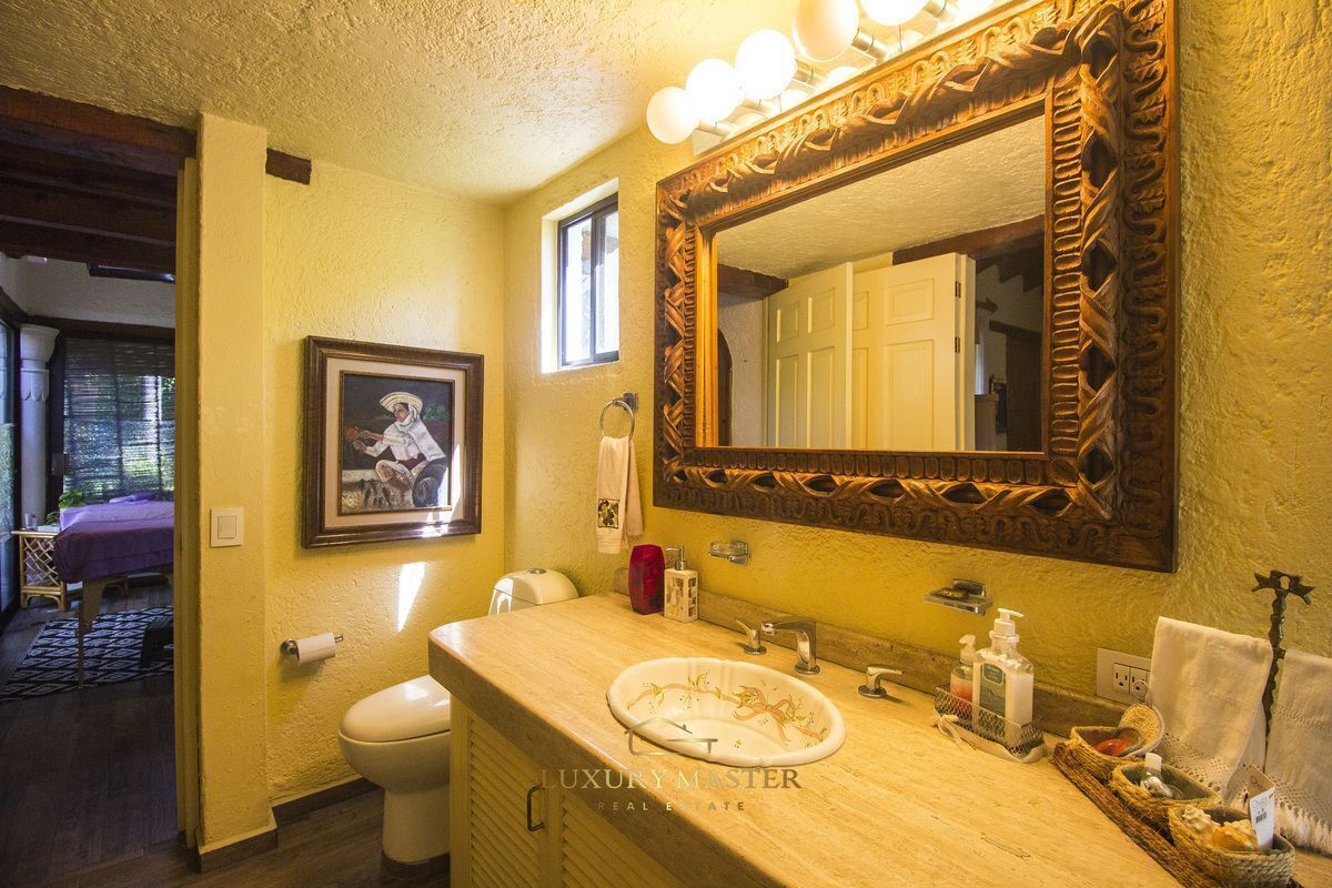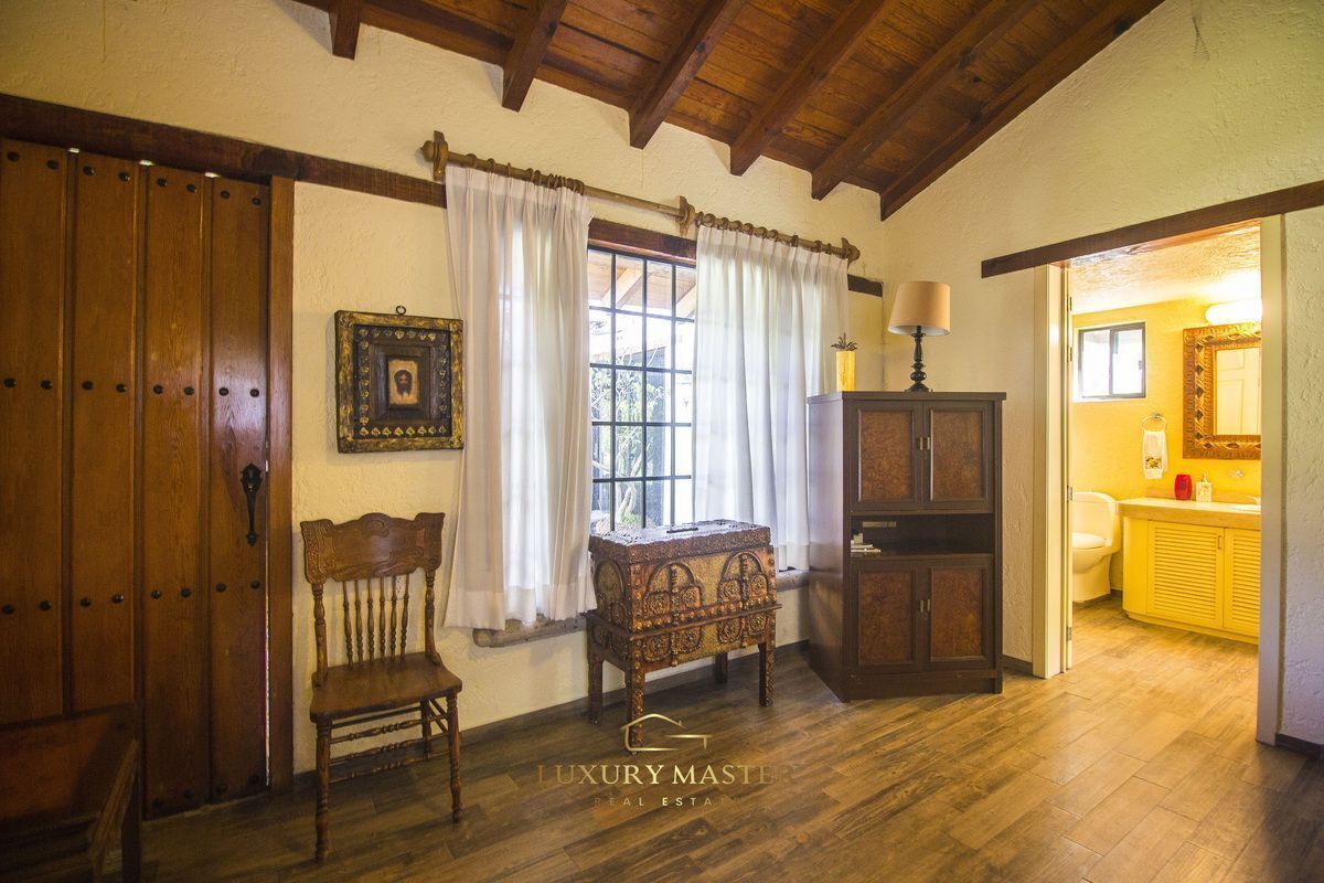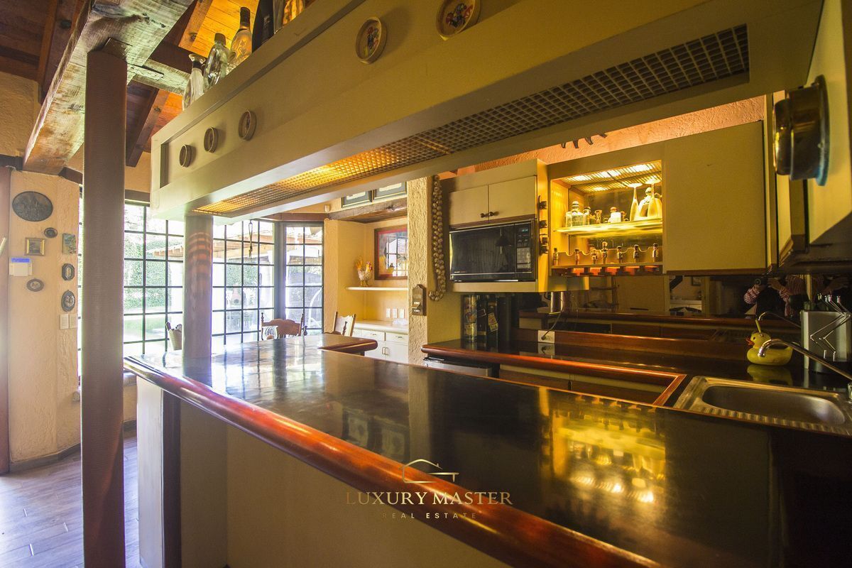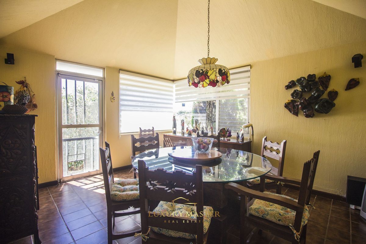 Hermosa Residencia ubicada frente al Campo de golf, cuenta con hermoso jardín frontal, una linda terraza, cochera para 4 vehículos, al ingreso a la casa grande encontrarás un amplio recibidor, una sala de star y un espacio de sala con magníficas vistas al campo de golf, un medio baño para visitas, y una pequeña bodega, cuenta también con un espacio bastante generoso para el comedor que da a un bello jardín posterior, la cocina diseño muy amplio con antecomedor, y un cuarto de lavado, cuenta con dos recámaras en planta baja con su baño completo, y clóset cada una; subiendo al primer piso encontrarás un estudio biblioteca muy amplio, con muy linda vista al campo de golf, y otra habitación principal con su baño, vestidor. En la casa chica o de huéspedes que encontrarás conectadas ambas por el jardín posterior, un cuarto de servicio con su baño completo, al ingreso cuentas con una sala y su chimenea, una cocineta con su barra y antecomedor; dos habitaciones una de ellas cuenta con doble altura y tapanco, y patio abierto; la otra con su clóset y su baño completo y tina; además de otro baño completo.