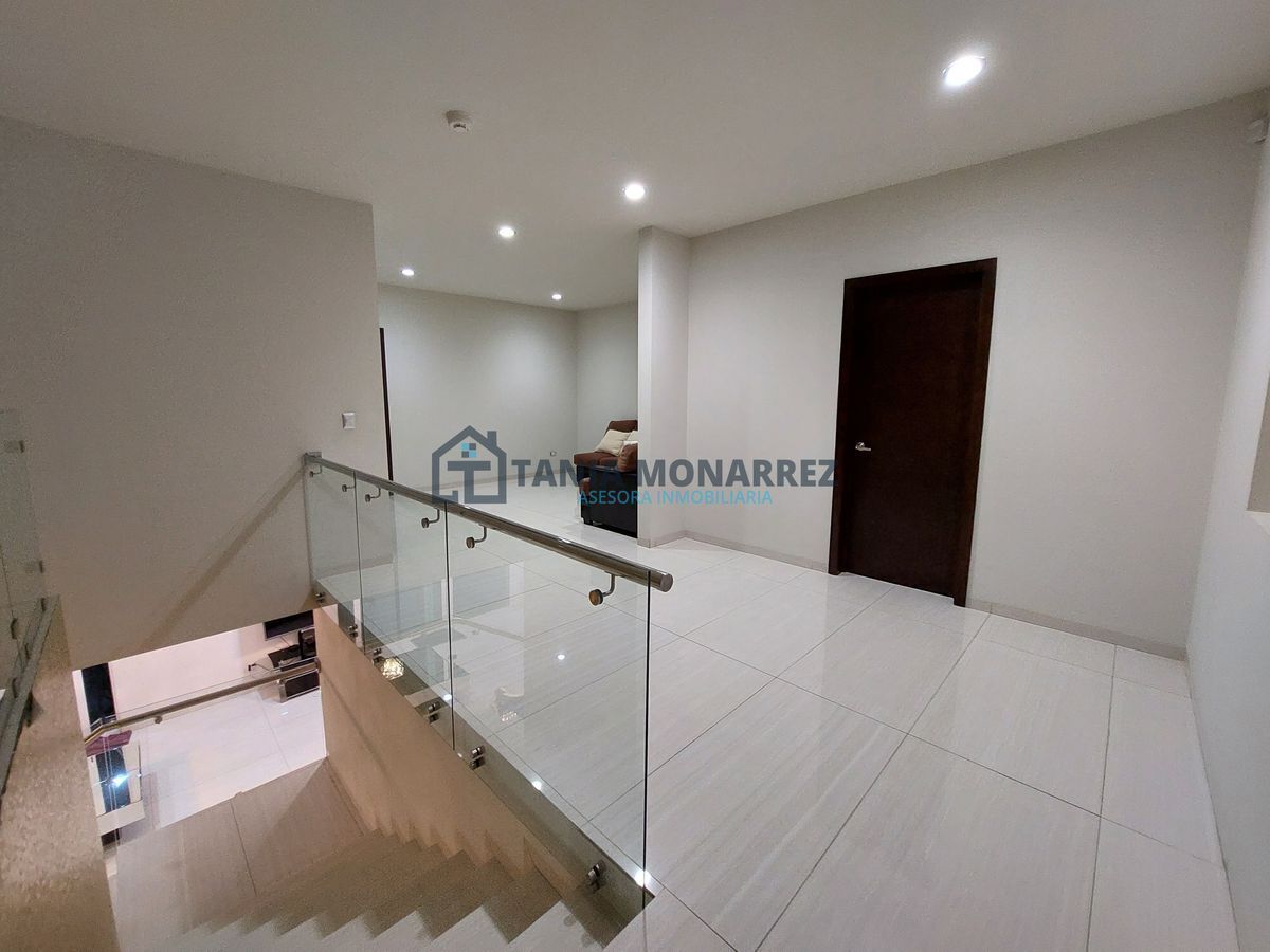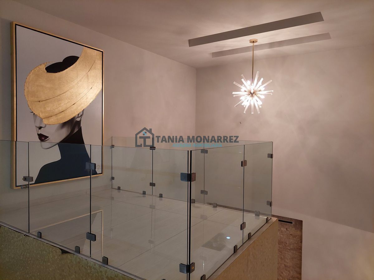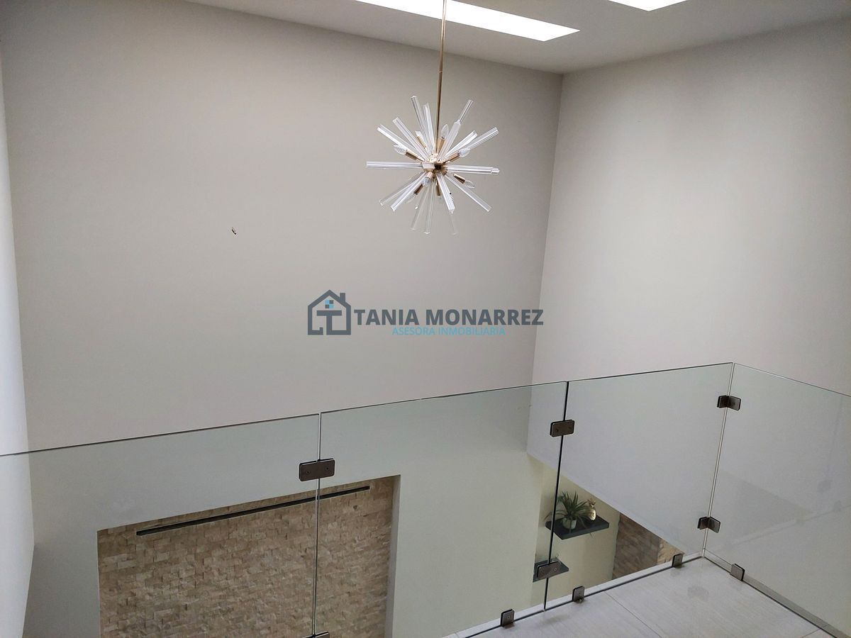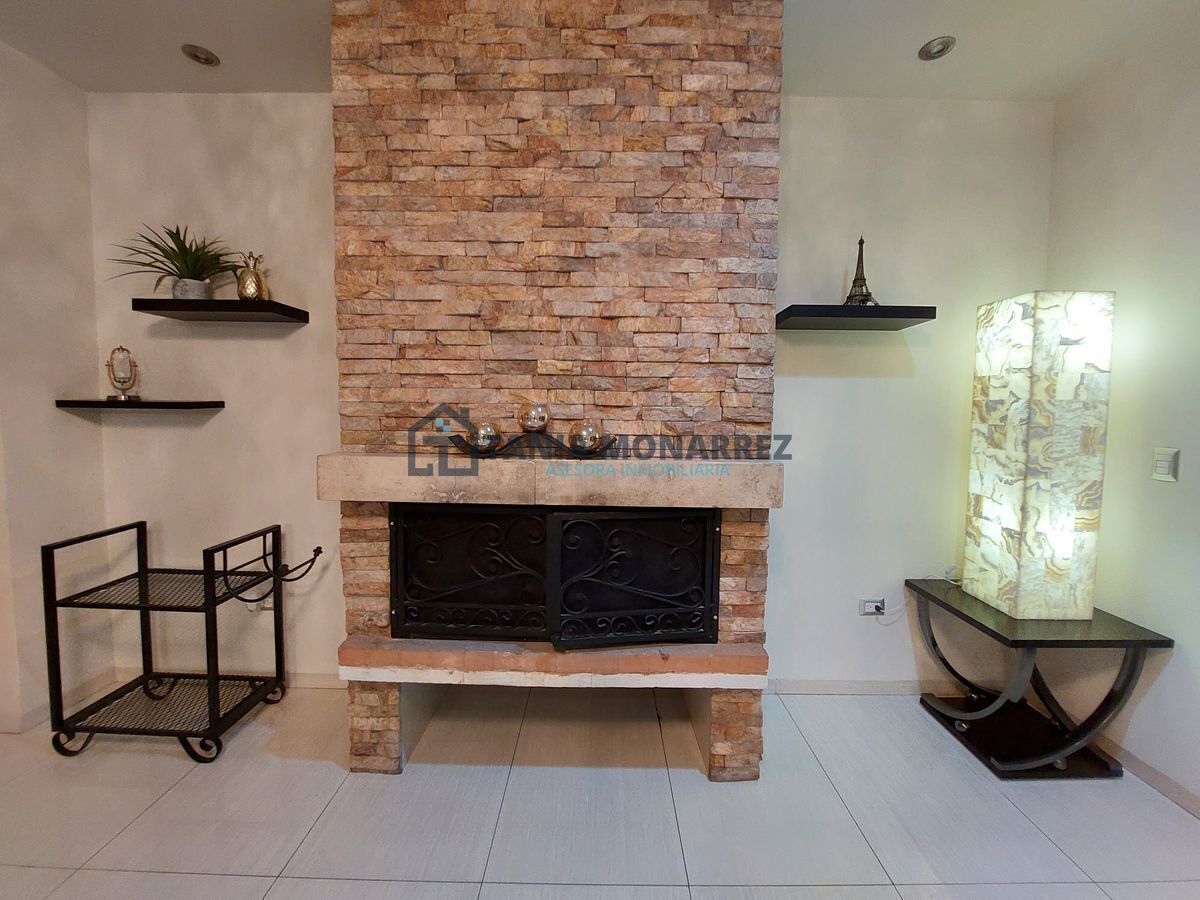 Complaints and suggestions: inmobiliariataniamonarrez@gmail.comCasa en uno de los mejores fraccionamientos privados al sur de la ciudad frente a área verde, con un terreno de 248 m2 y 360 m2 de construcción en dos plantas. La planta baja cuenta con cochera para dos autos en la que se encuentra dos bodegas para guardar herramientas tiene acceso peatonal en la entrada, recibidor con un hermoso muro llorón de piedra, medio baño, sala-comedor muy amplios con chimenea con detalles en piedra y ónix , patio, cocina con cocineta integral e isla ambas con cubierta de ónix incluye los electrodomésticos que son la estufa y el microondas, cuarto de alacena, cuarto de lavado con lavadero, recamara con baño y vestidor propio. La planta alta cuenta con una amplia estancia para sala de tv, cuarto de blancos, 3 recamaras con su propio vestidor y baño, donde la principal tiene tina y un balcón con vista a la calle.
