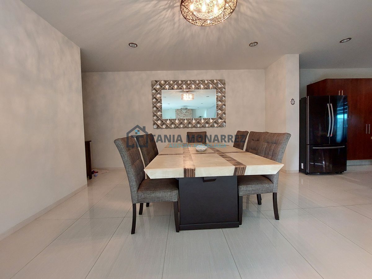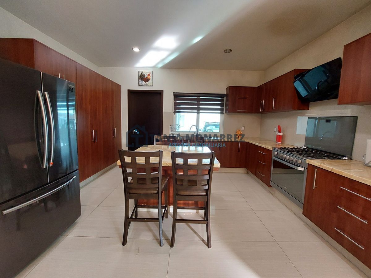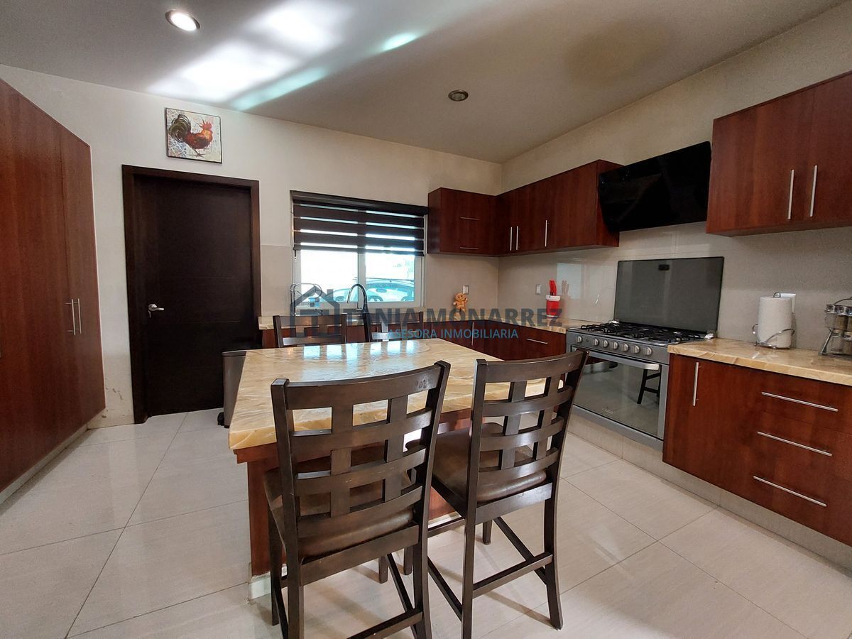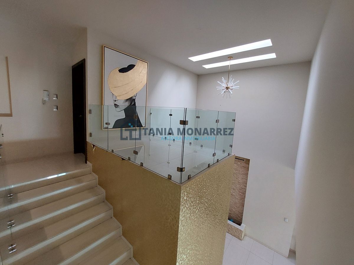 Complaints and suggestions: inmobiliariataniamonarrez@gmail.comCasa en uno de los mejores fraccionamientos privados al sur de la ciudad frente a área verde, con un terreno de 248 m2 y 360 m2 de construcción en dos plantas. La planta baja cuenta con cochera para dos autos en la que se encuentra dos bodegas para guardar herramientas tiene acceso peatonal en la entrada, recibidor con un hermoso muro llorón de piedra, medio baño, sala-comedor muy amplios con chimenea con detalles en piedra y ónix , patio, cocina con cocineta integral e isla ambas con cubierta de ónix incluye los electrodomésticos que son la estufa y el microondas, cuarto de alacena, cuarto de lavado con lavadero, recamara con baño y vestidor propio. La planta alta cuenta con una amplia estancia para sala de tv, cuarto de blancos, 3 recamaras con su propio vestidor y baño, donde la principal tiene tina y un balcón con vista a la calle.