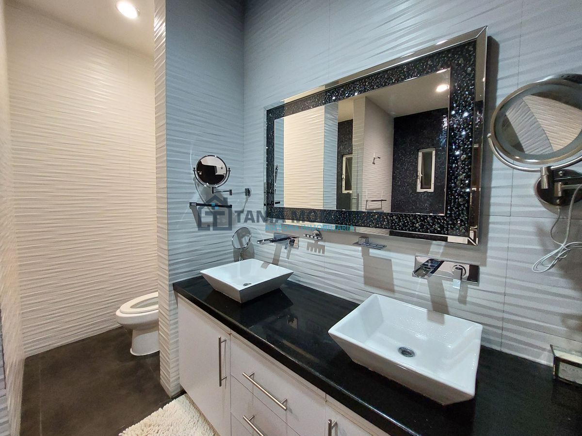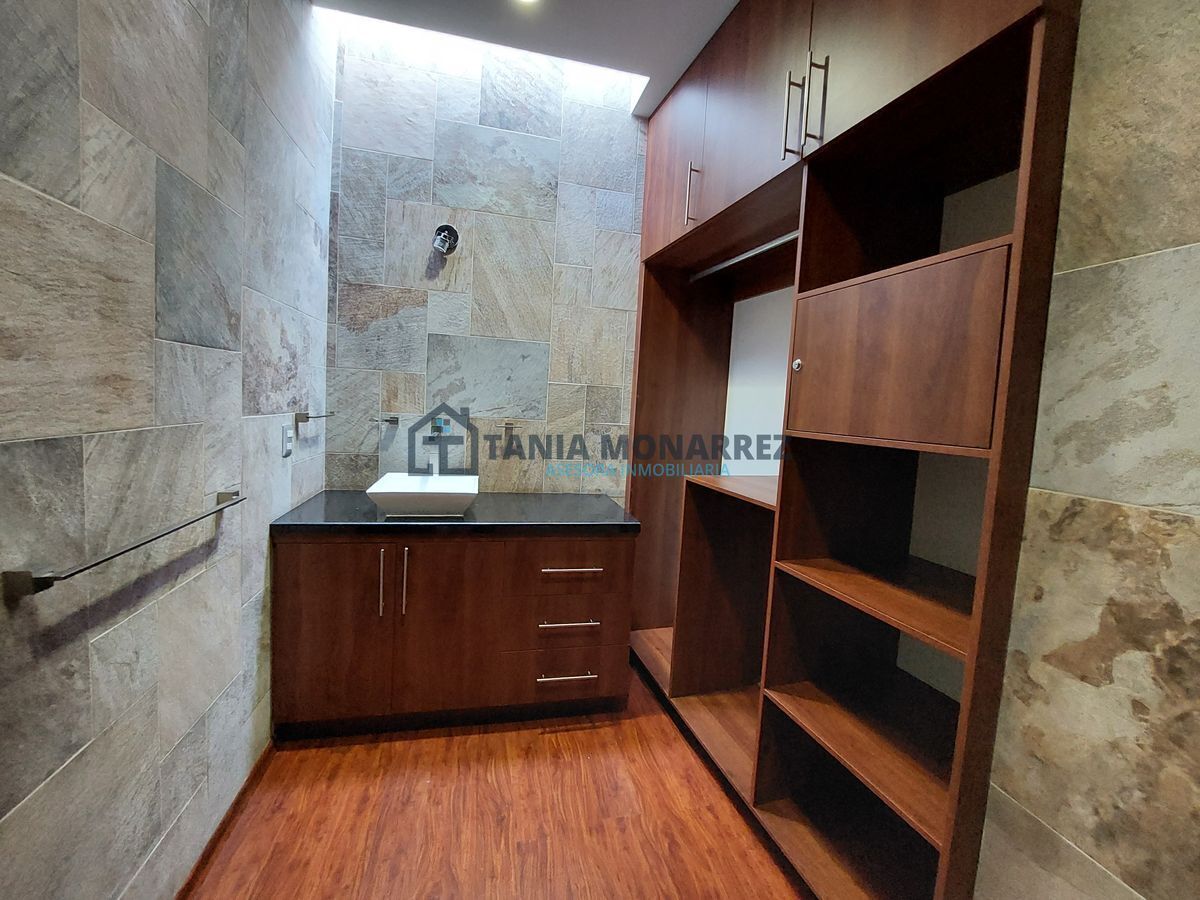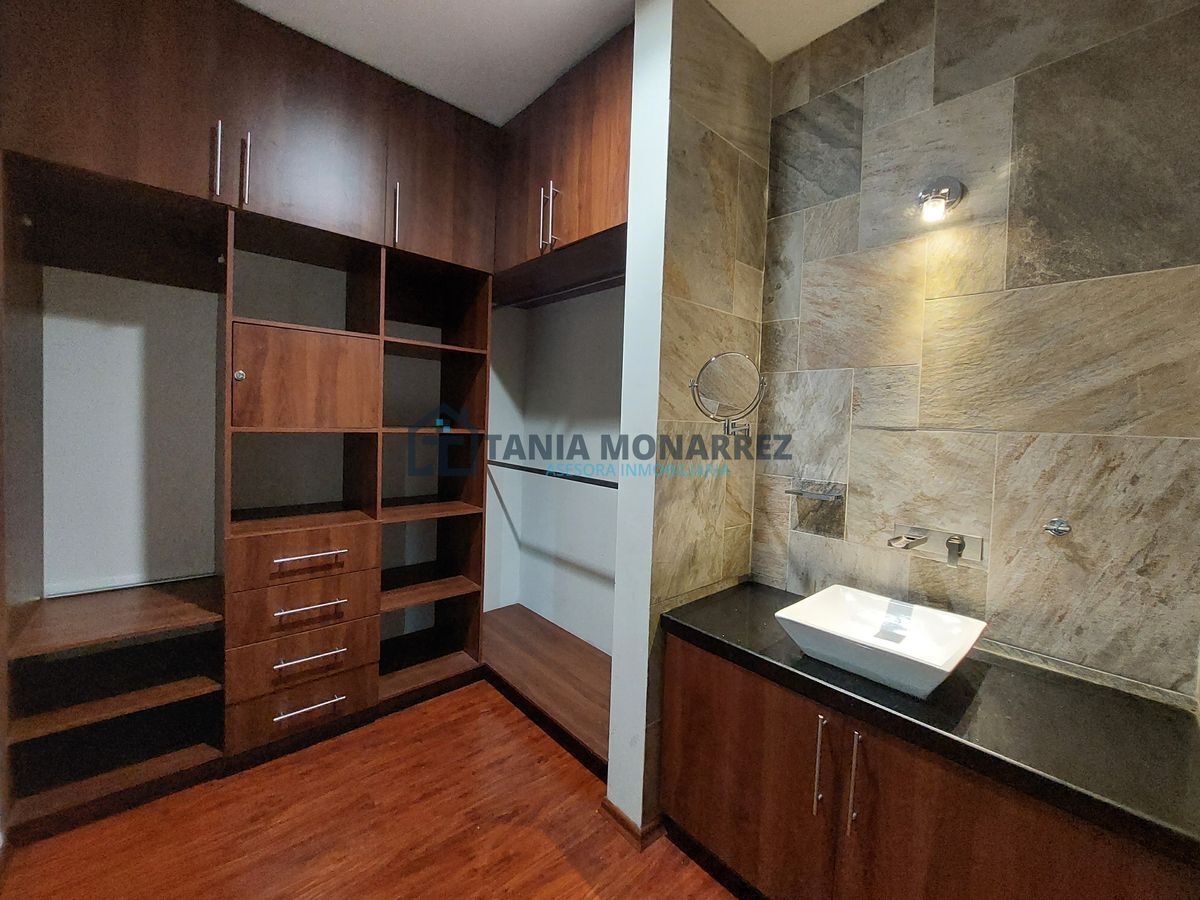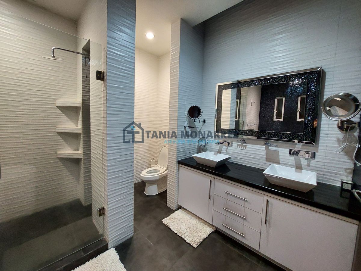House in one of the best private subdivisions in the south of the city, facing a green area, with a land area of 248 m2 and 360 m2 of construction on two floors. The ground floor has a garage for two cars, which includes two storage rooms for tools, has pedestrian access at the entrance, a reception area with a beautiful stone waterfall wall, a half bathroom, a very spacious living-dining room with a fireplace with stone and onyx details, a patio, a kitchen with an integral kitchen and an island, both with onyx countertops, includes appliances which are the stove and microwave, a pantry, a laundry room with a sink, a bedroom with its own bathroom and dressing room. The upper floor has a large living area for a TV room, a linen room, 3 bedrooms each with its own dressing room and bathroom, where the main one has a tub and a balcony overlooking the street.