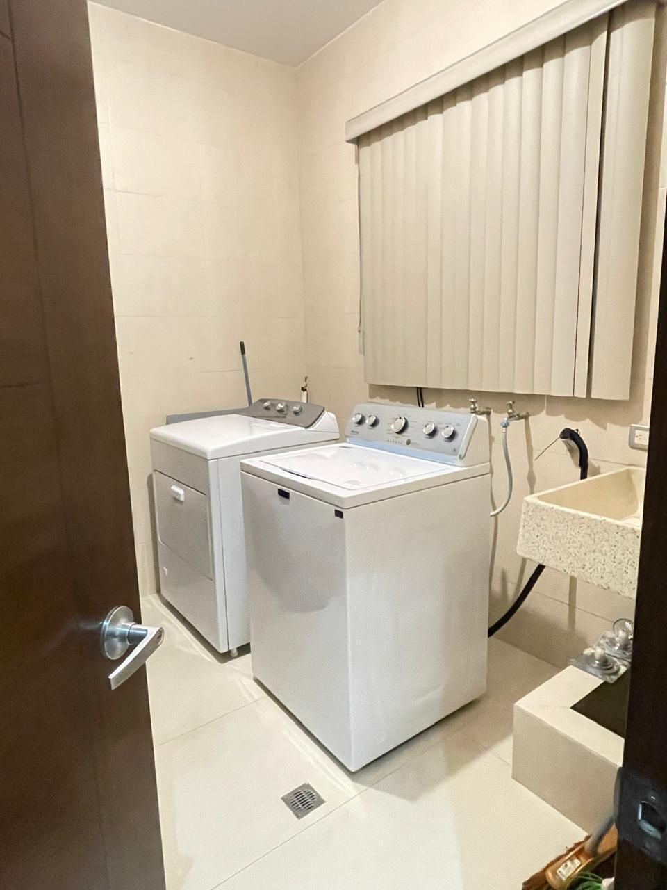 Cuenta con recibidor, sala, comedor, baño completo, cocina con barra de granito, cuarto de servicio con baño completo, lavandería, 2 bodegas.
