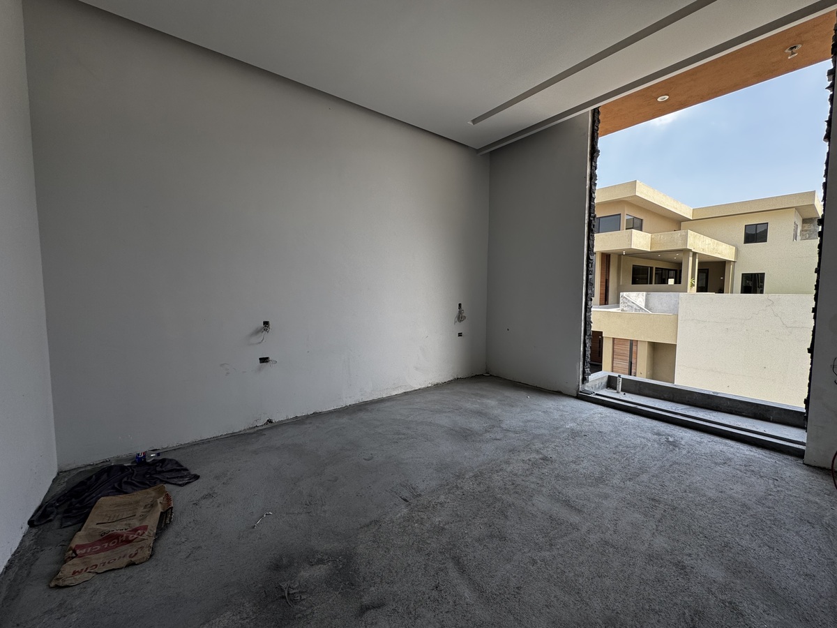 La planta alta alberga la recámara principal y tres secundarias, todas con baño y vestidor, junto con una estancia/sala de TV.