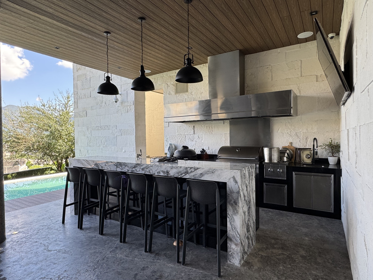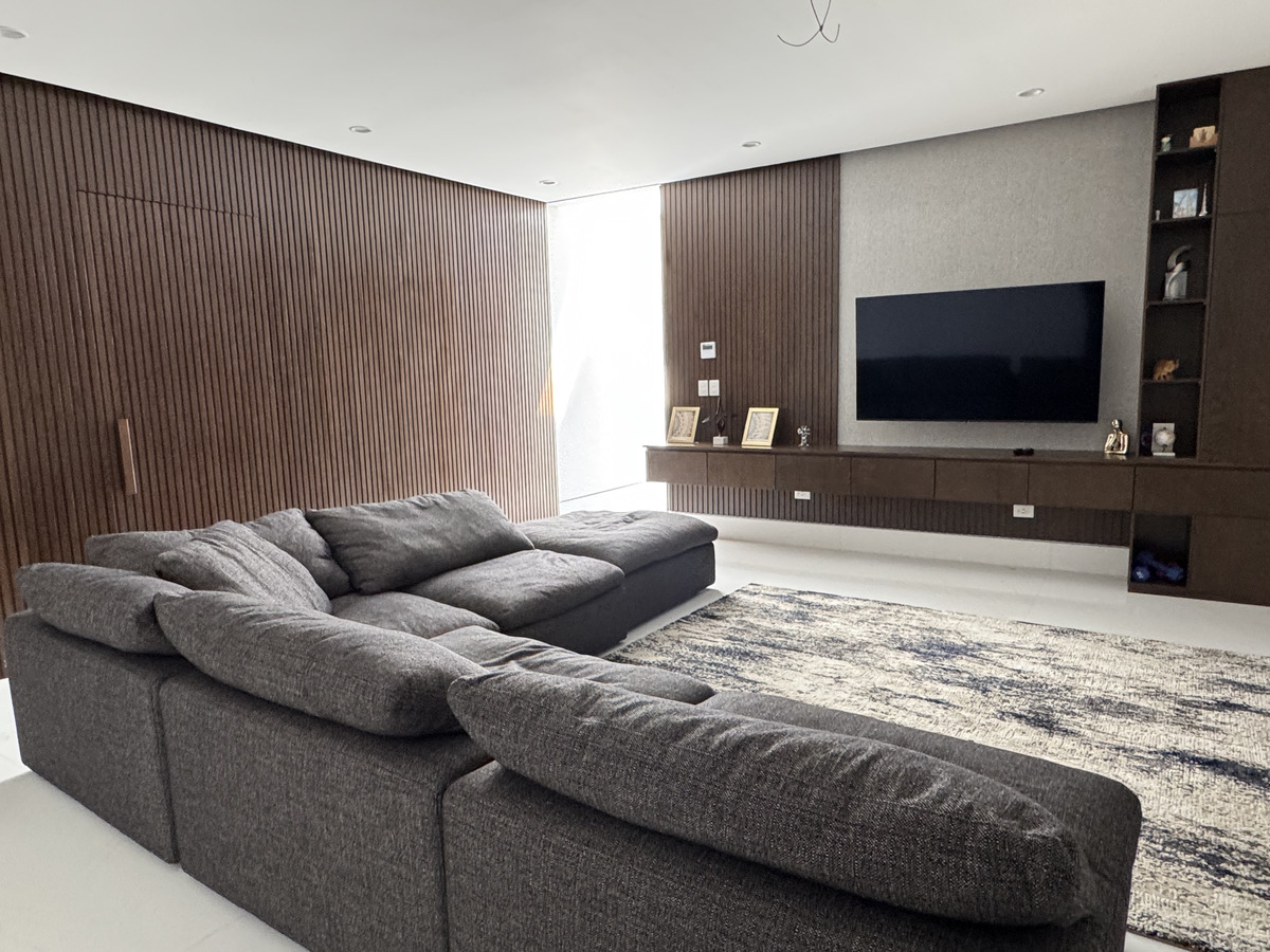 -Amplia área de entretenimiento con bar, sala de TV y espacio para mesa de juegos y acceso directo a área exterior.