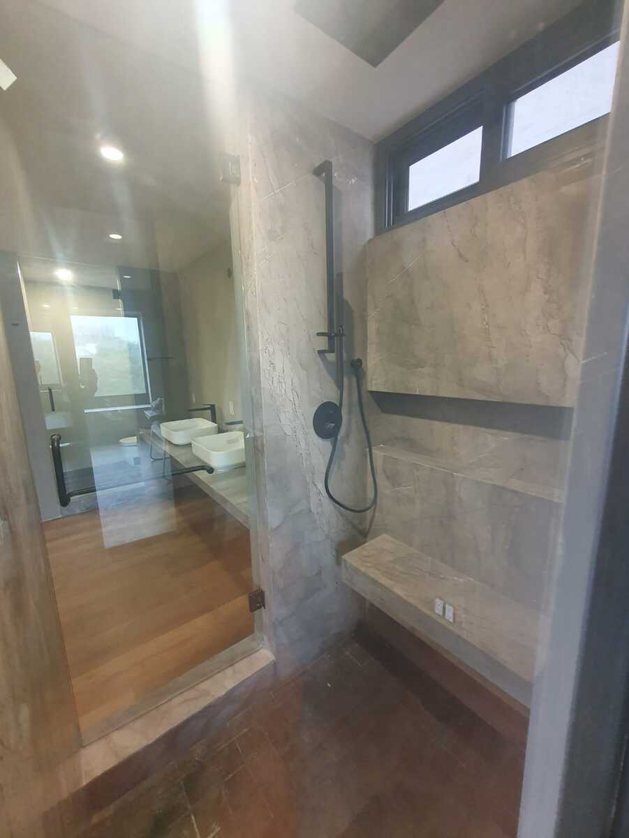 La casa cuenta con excelentes acabados, piso de mármol en áreas sociales, duela vinílica en área de recámaras y vestidores, piso de porcelanato en el resto de la casa, placa de mármol en baños y recámaras, ventanería, cancelería de vidrio templado, puertas interiores de madera semisólidas de banak, alberca acabado veneciano (según diseño), portón y puerta de acceso de herrería.