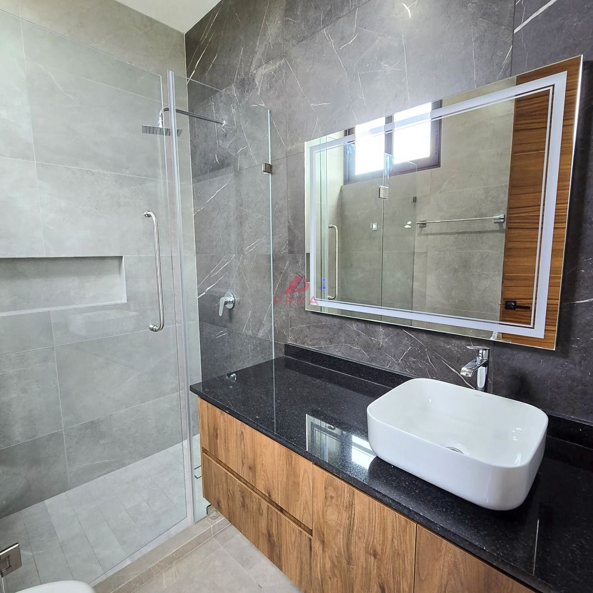 • Ground Floor: Garage for two cars, a living-dining room with large windows that provide exceptional natural light, a luxury kitchen with refrigerator, built-in oven, bar, and granite countertops. A study with a full bathroom on this floor can be converted into a third bedroom, ideal for elderly people or guests.