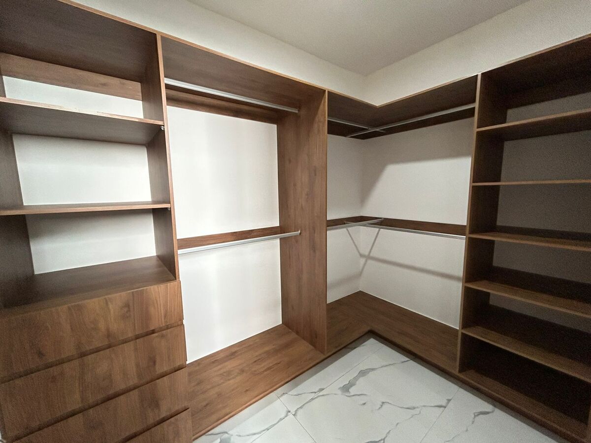 Upper floor: Access by stairs, family room with view to the double height, 3 rooms each with a full bath and independent walk-in closet, terrace in room 1 with street view.