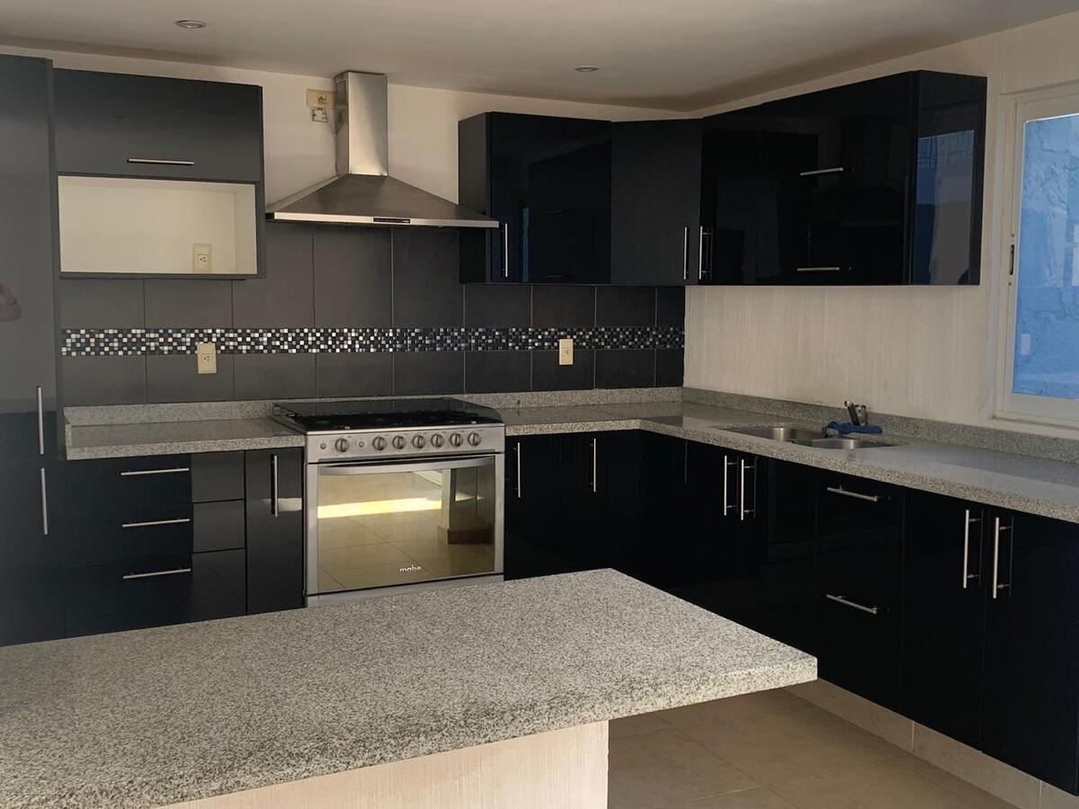- Cocina integral equipada con cubierta de granito, doble tarja, alacena y barra desayunador.