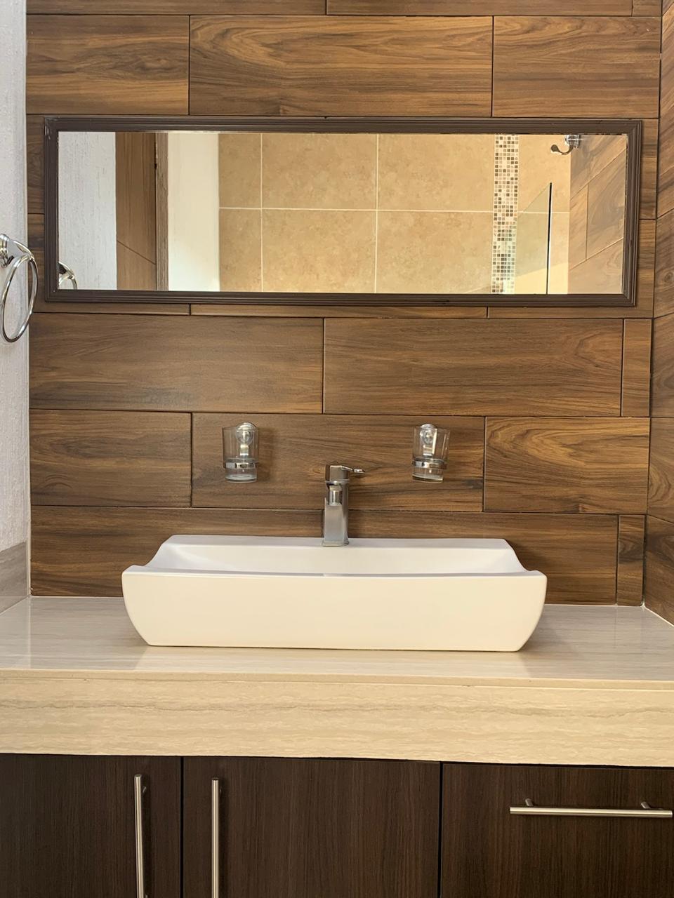 - Baño completo con ovalín, y acabados en cerámica, regadera con cancel de cristal templado.