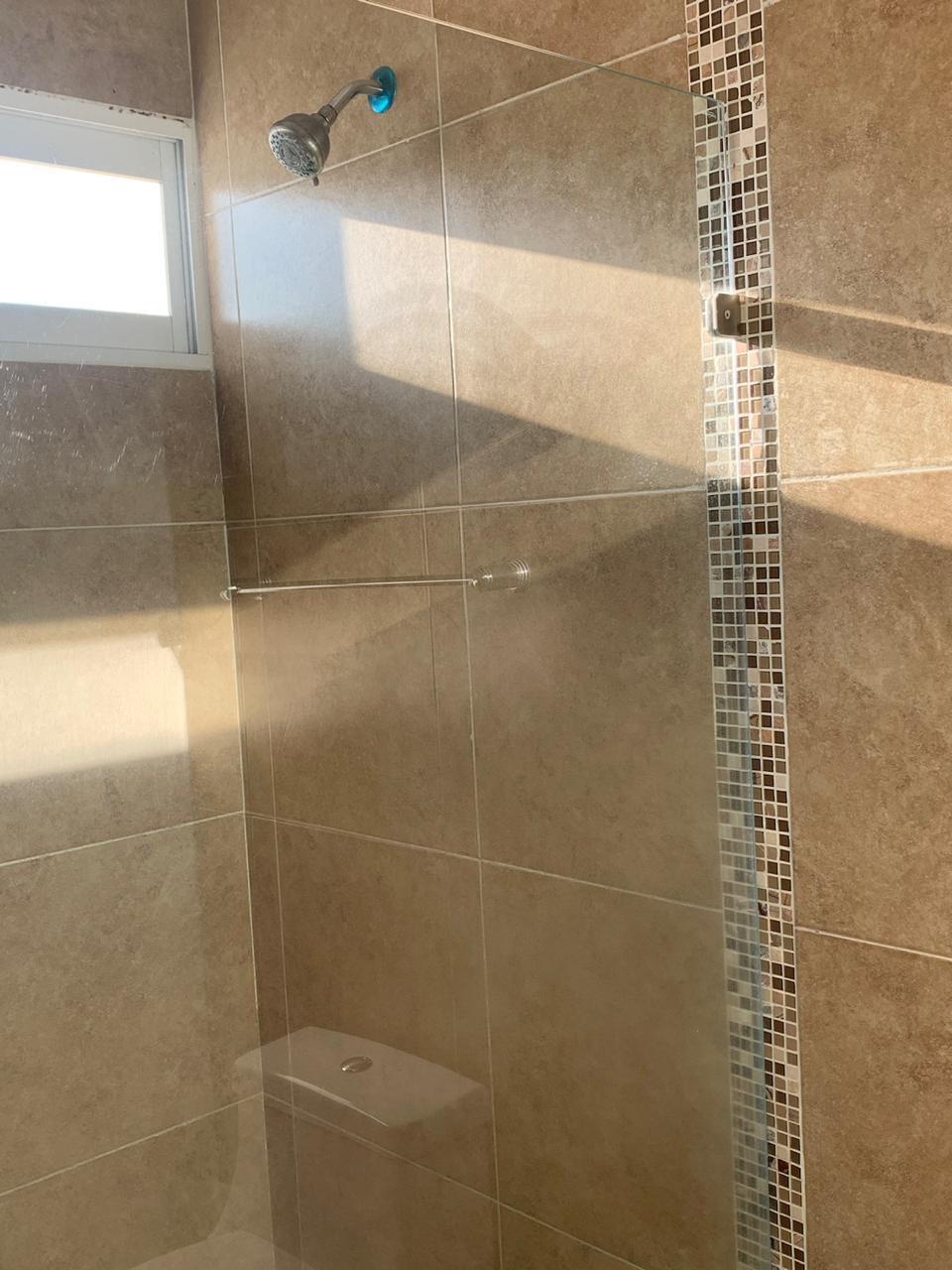 - Full bathroom with sink, and ceramic finishes, shower with tempered glass enclosure.