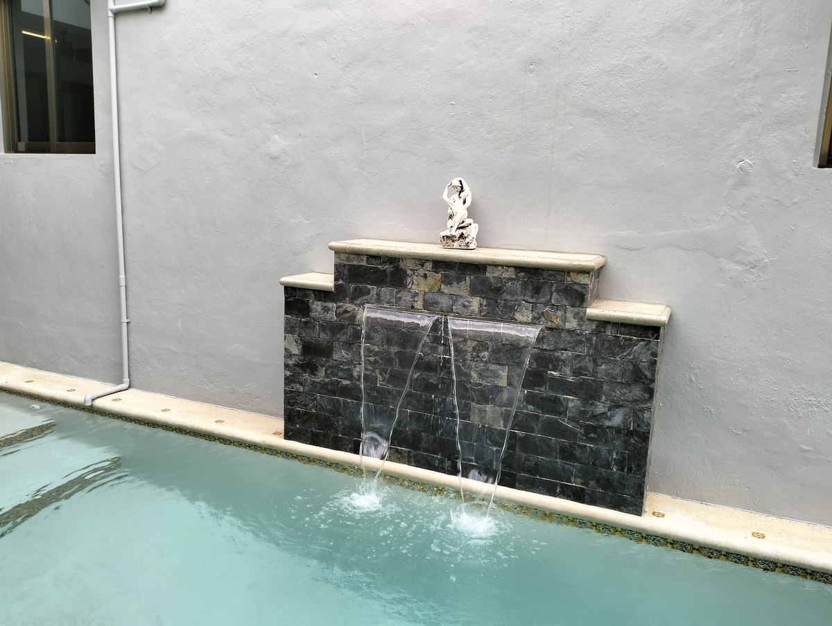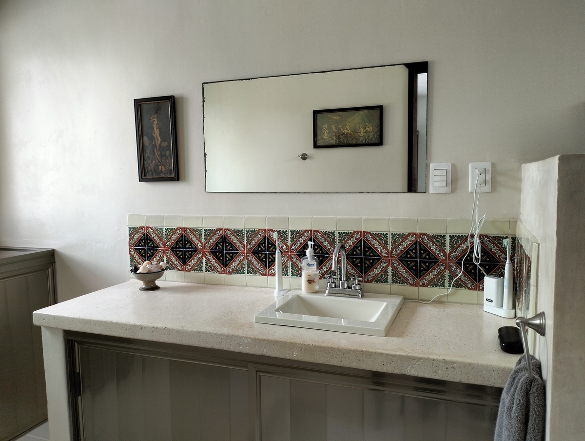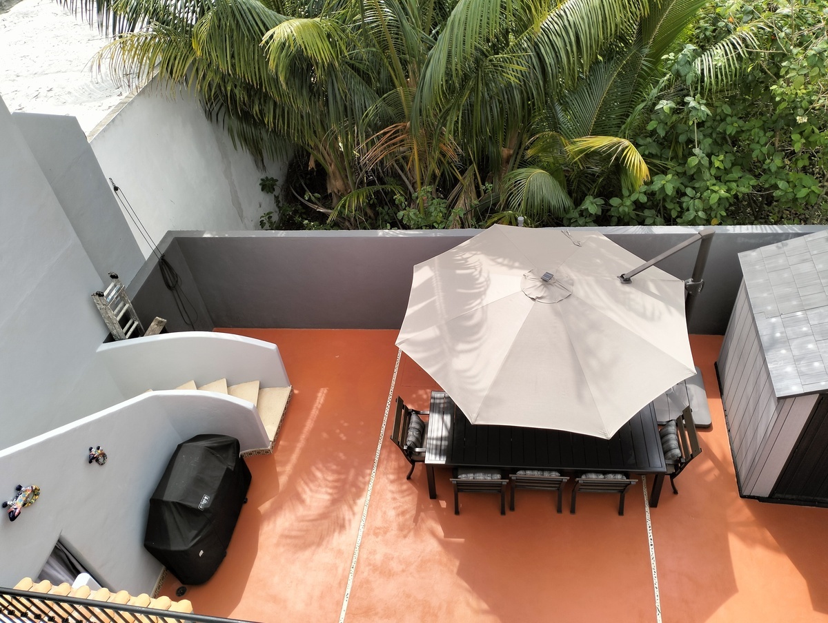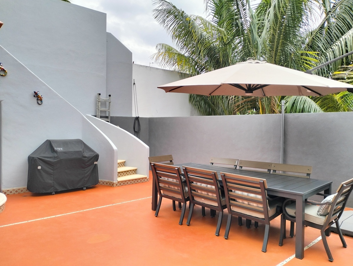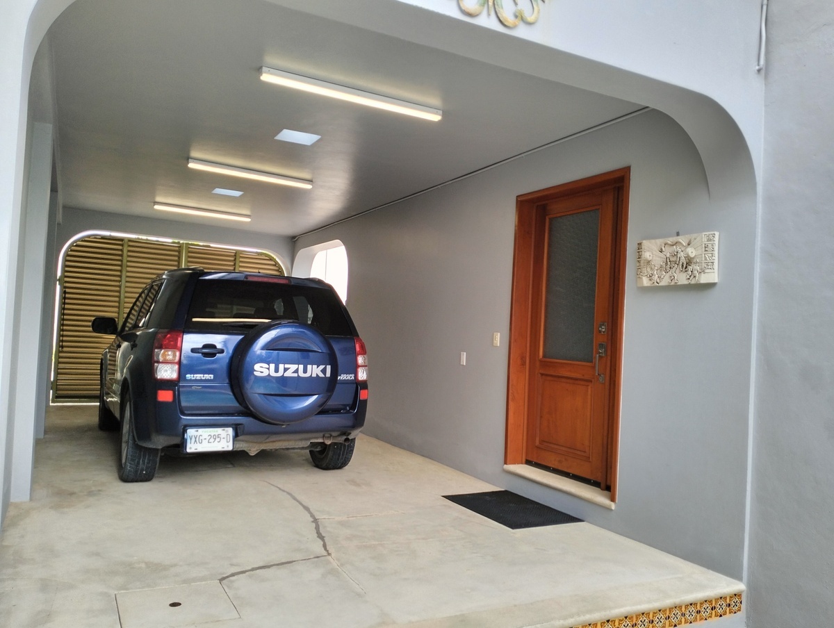 Covered garage for 2 cars that also serves as a social area connected to the pool and rear social area.