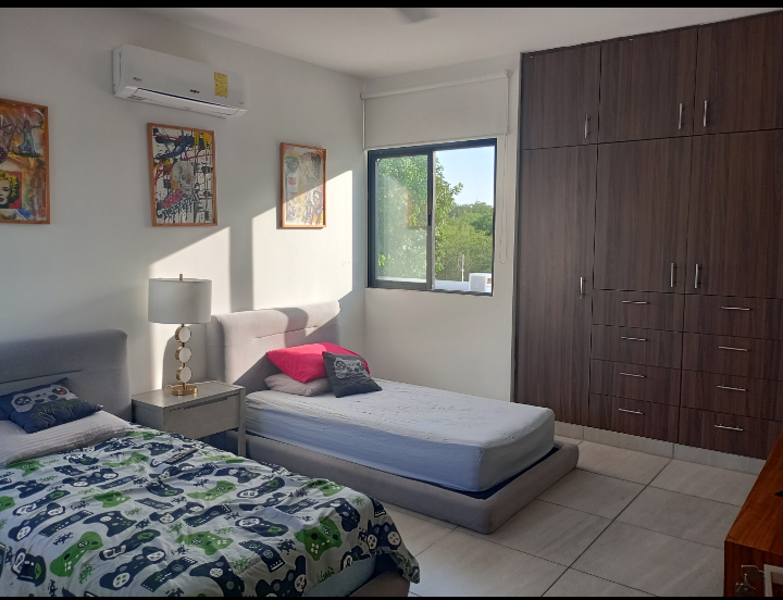 *2 recámaras cada una con closet y baño completo con aire acondicionado y abanico