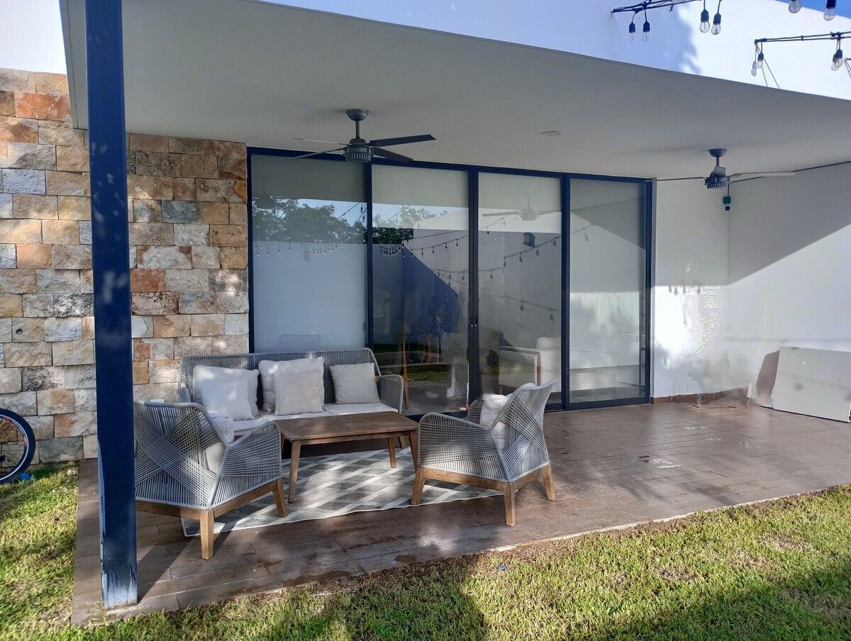 Own resources and bank credit are accepted.Hermosa casa en venta totalmente equipada en Temozon al Norte de la Ciudad de Mérida. Cuenta con paneles solares.