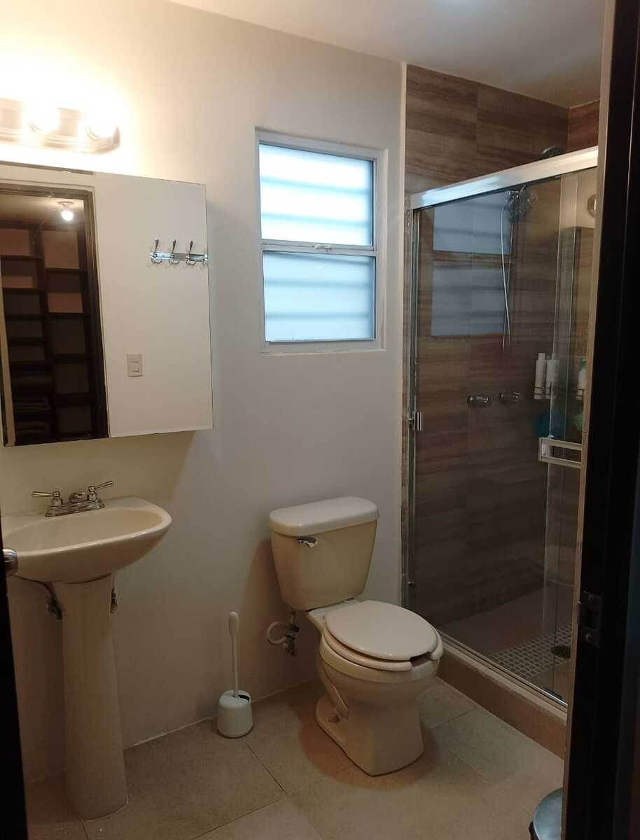 En espacio abierto en planta baja encuentras un área de estancia, comedor y cocina. Con ventana orientada al frente de la propiedad. Tambien en plata baja encuentras un estudio o alcoba en la parte posterior y un cuarto de servicio, así como un baño completo.