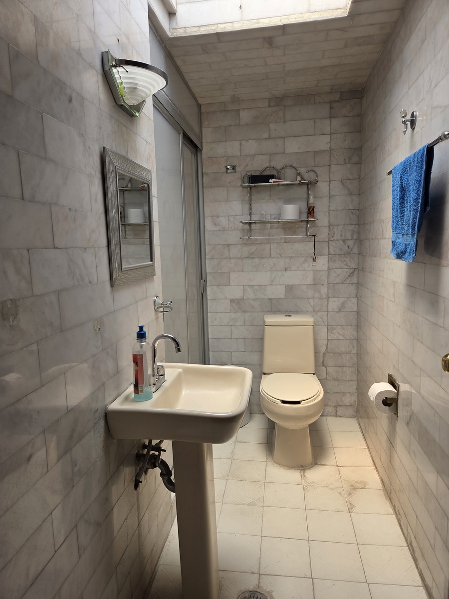 Azotea; cuarto de servicio con baño completo, cuarto de lavado, patio de tendido, calentador solar, gas estacionario.