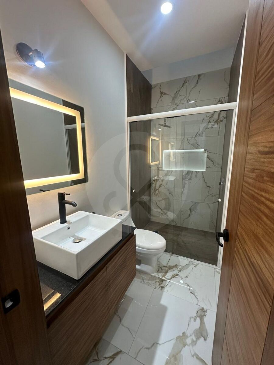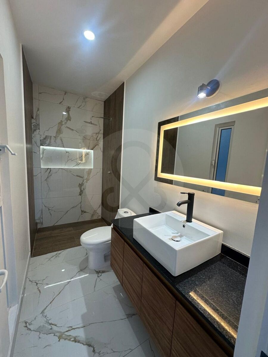 On the GROUND FLOOR you will find a garage for 2 cars, entrance with a solid parota door, large format porcelain floors, study or bedroom, full bathroom with Premium finishes, spacious living-dining room, bar area with granite counter, fully equipped integral kitchen with granite countertop, oven tower, induction grill, and high-gloss cabinets. The terrace with garden is ideal for your gatherings.