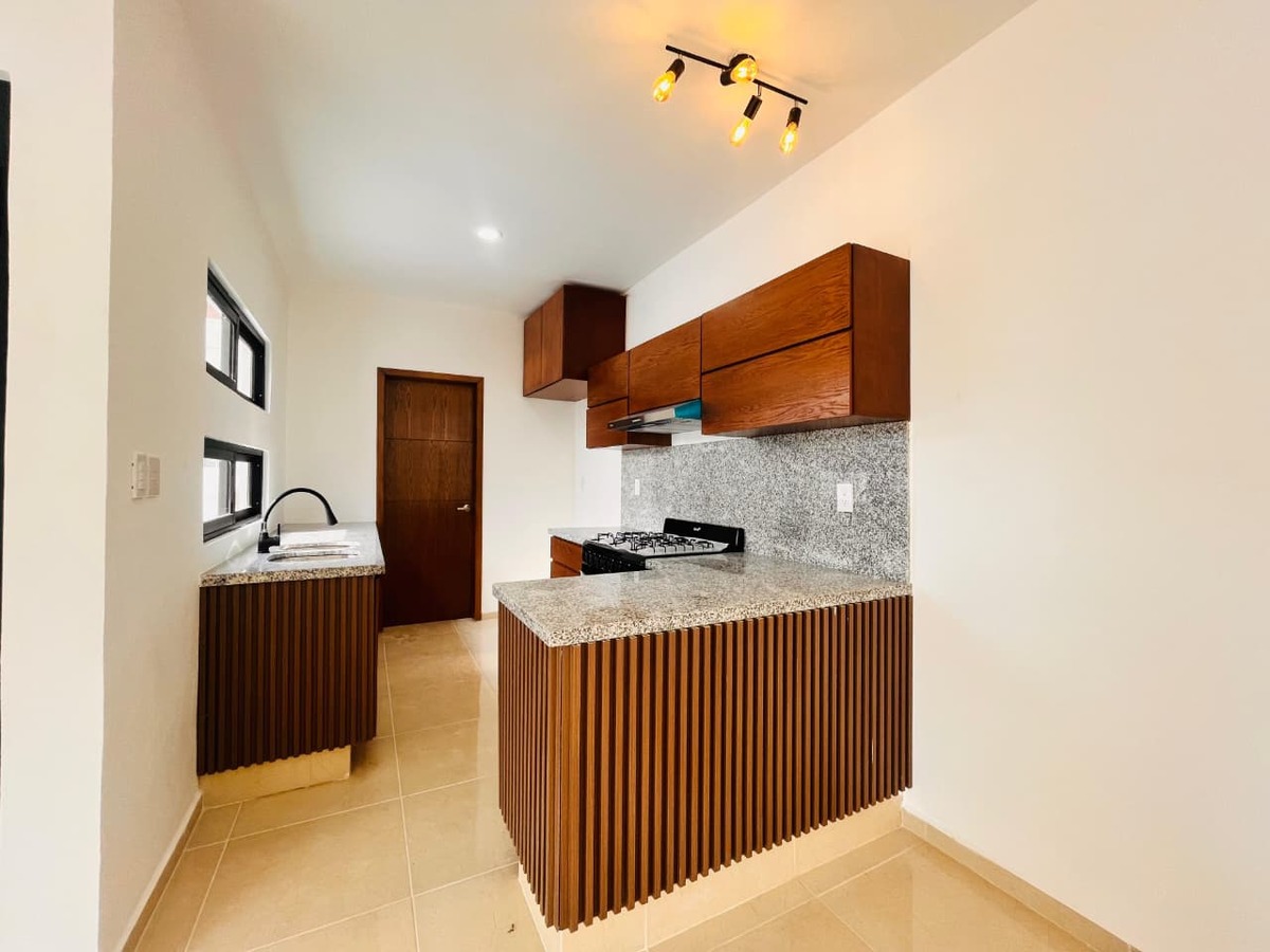 * Cocina integral con barra de granito.