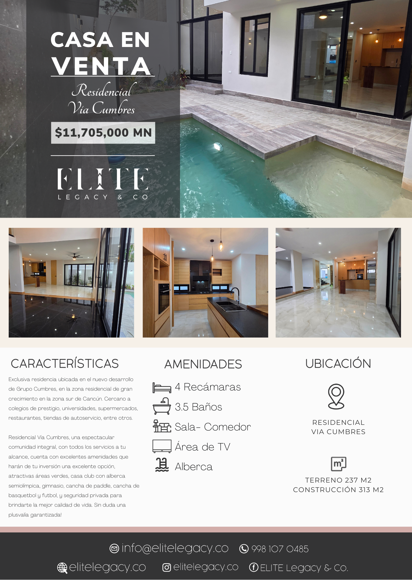 Residencial Vía Cumbres es una de las zonas residenciales mas exclusivas y modernas en Cancún, Ubicada en una de las áreas de mayor crecimiento y plusvalía, este desarrollo ofrece un estilo de vida de lujo, seguridad y confort.