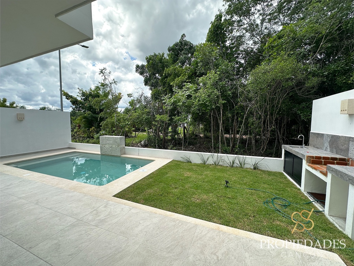 - Área de terraza, alberca con cascada, jardín y área de asador con lavabo con hermosa vista al parque.